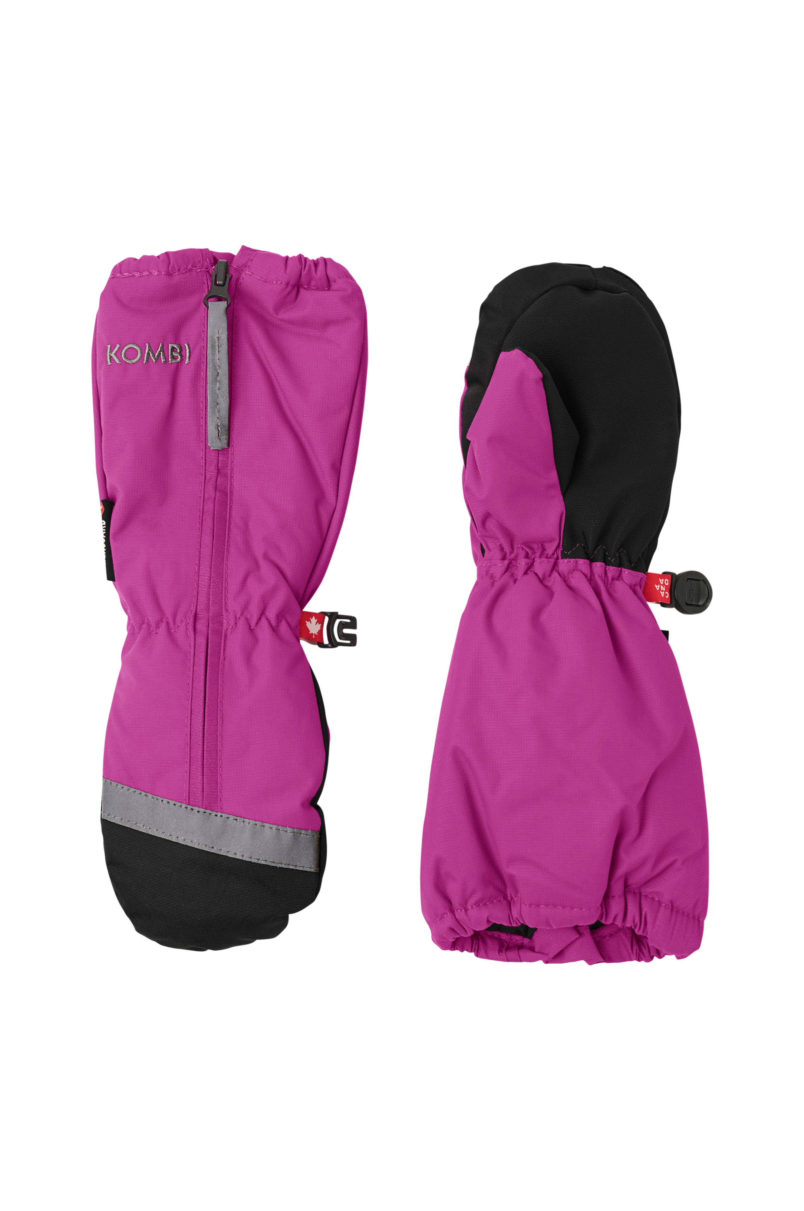 Talvirukkaset, joissa lämmin toppaus ja vedenpitävä päällysmateriaali. Waterguard-materiaali pitää kädet kuivina ja lämpiminä ja luo miellyttävän sisäilmaston rukkaseen. Pukemista helpottava pitkä vetoketju, jonka alla kiila. Lämmin villasekoitevuori ranteen alapuolella. Heijastavat yksityiskohdat.