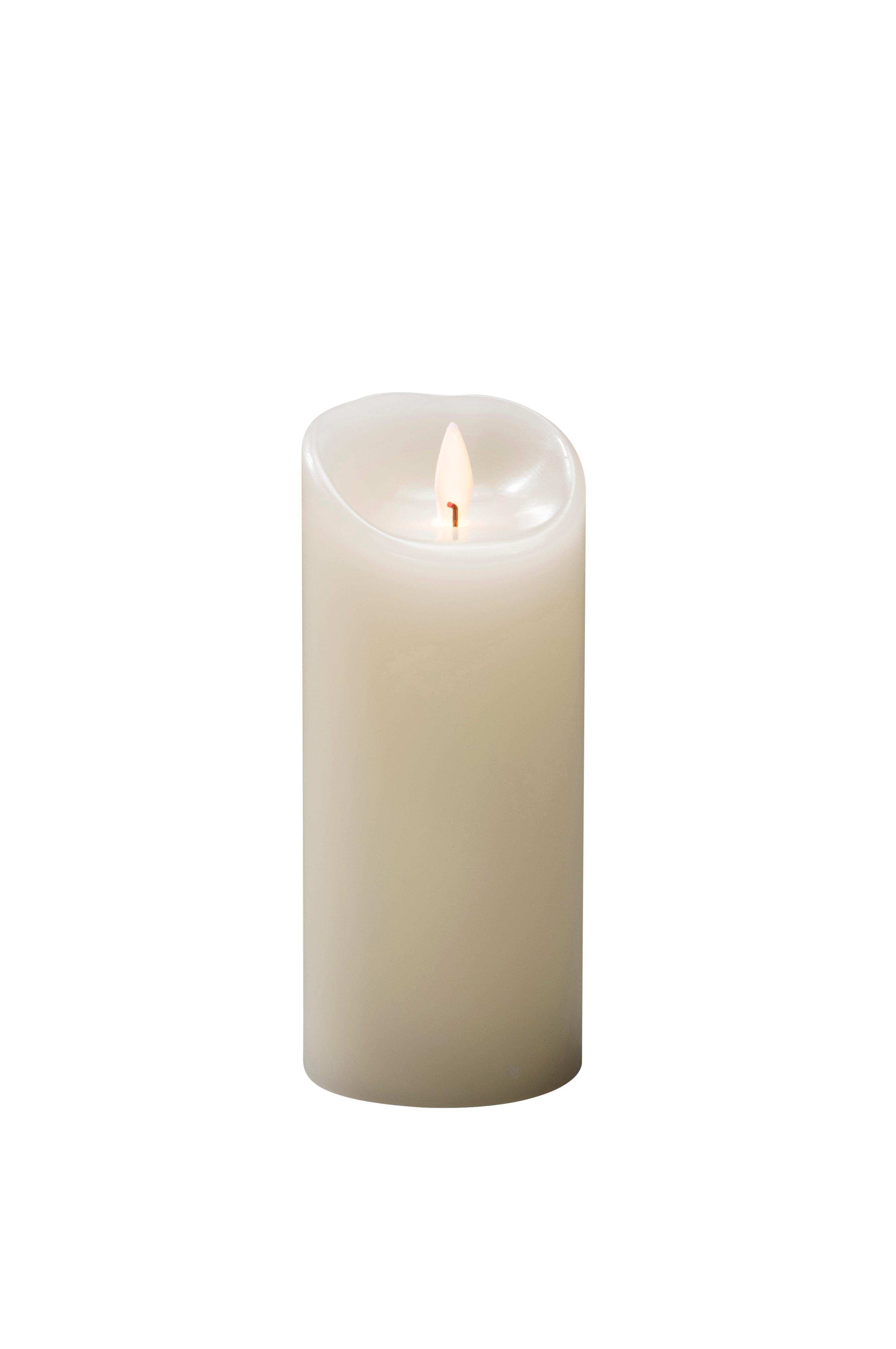 Kermanvalkoinen LED-vahakynttilä sisäkäyttöön. Lepattava liekki. Toimii kahdella C-paristolla. Kynttilässä on sisäänrakennettu ajastin 4/8 tuntia. Korkeus 17,8 cm ja halkaisija 7,5 cm.