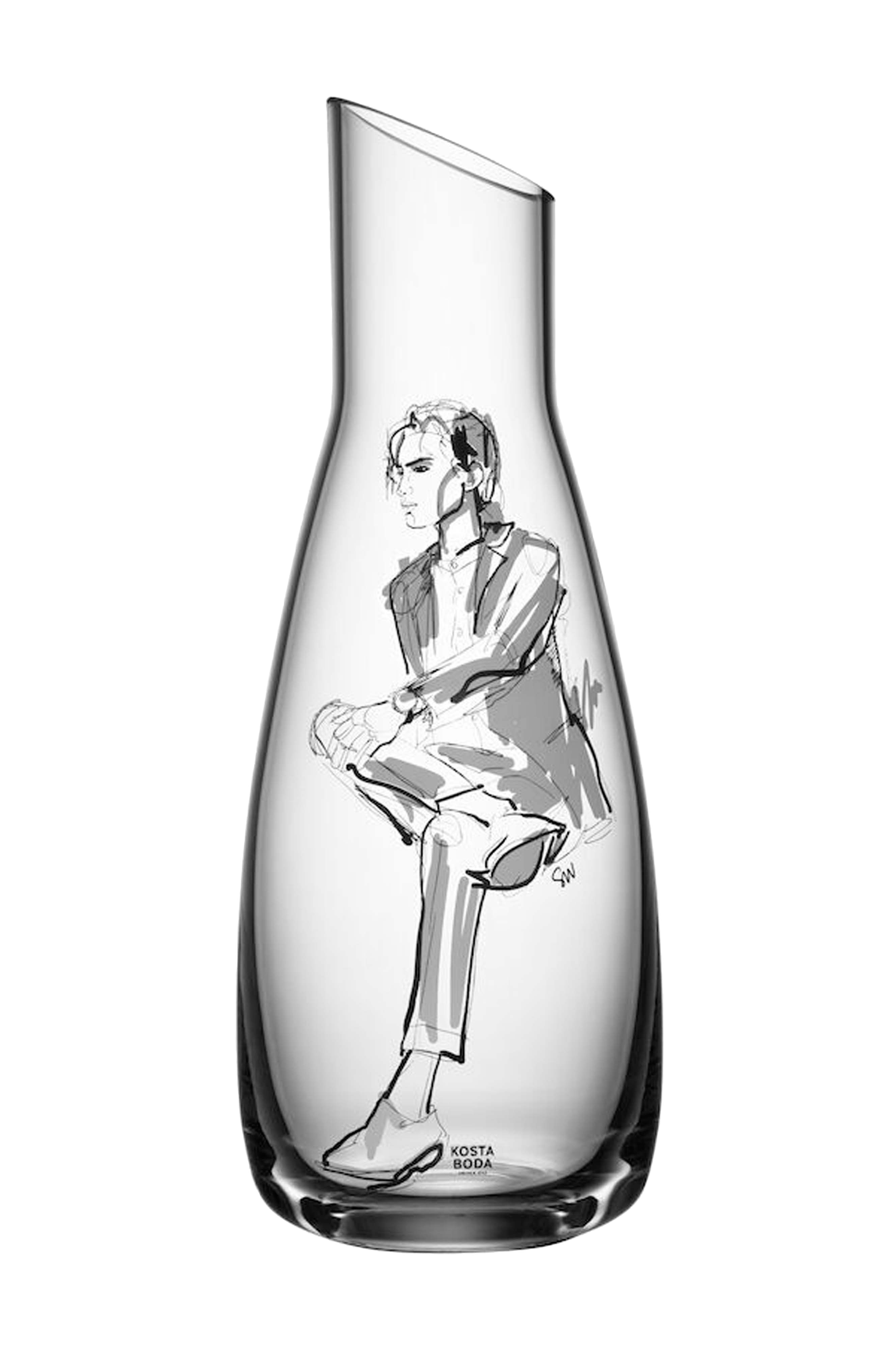 Kosta Bodan Him-karahvissa on miehen kokovartalokuvio. Him-karahvin harmaa kuvio symboloi eleganssia.Suunnittelija: Sara Woodrow.