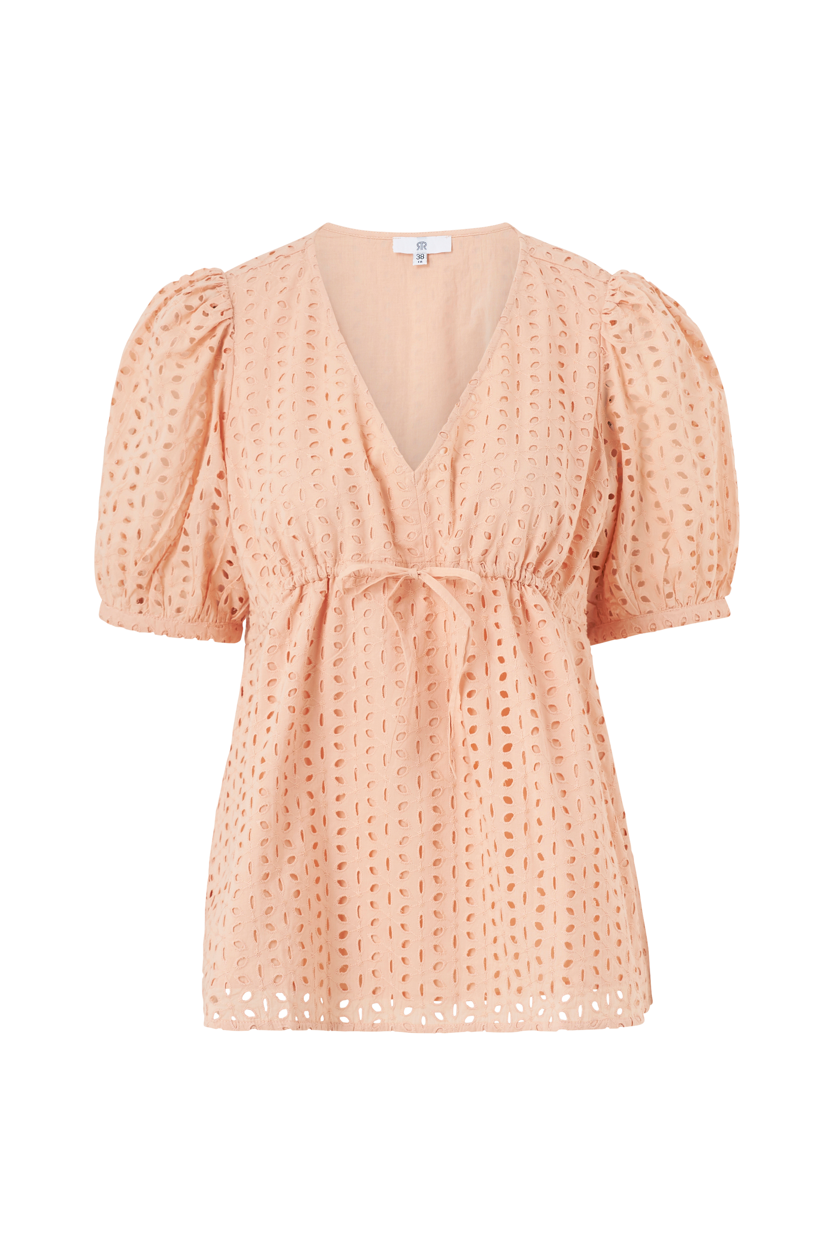 Romanttinen äitiyspaita, jossa kirjailuja ja reikäkuvio. Yksityiskohdat: - Lyhyet pussihihat - Suora malli - V-pääntie - Solmittavat nauhat edessä - Pituus 67 cm koossa 38 - Malli on suunniteltu raskaana oleville naisille Materiaali ja hoito-ohje: - 100% puuvillaa - Hienopesu 30° - Silitys matalalla lämmöllä/ei valkaisuainetta - Ei rumpukuivausta - Ei kemiallista pesua
