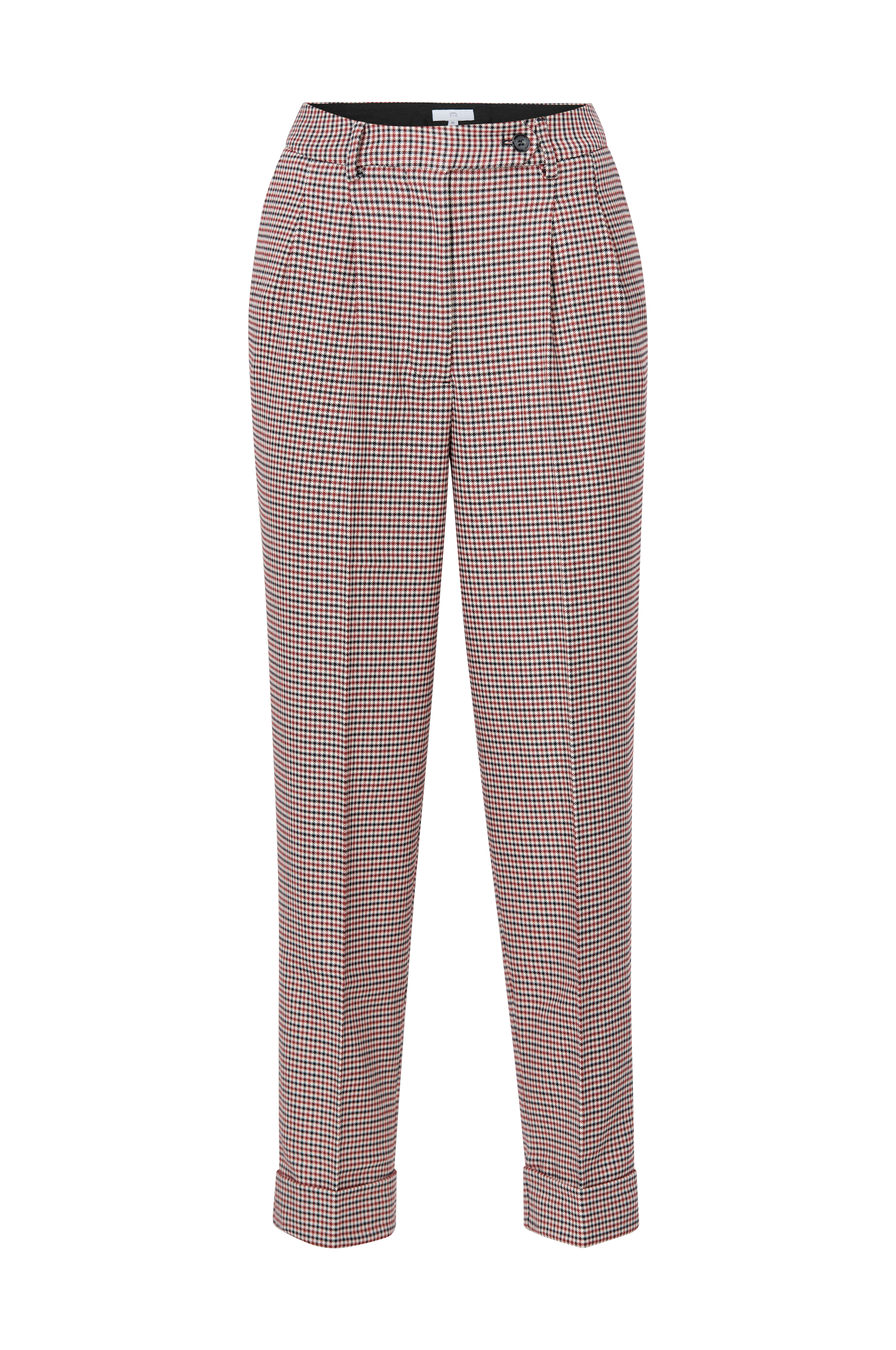Maskuliininen kukonaskelkuvio. Kapeat housut, joissa laskokset.