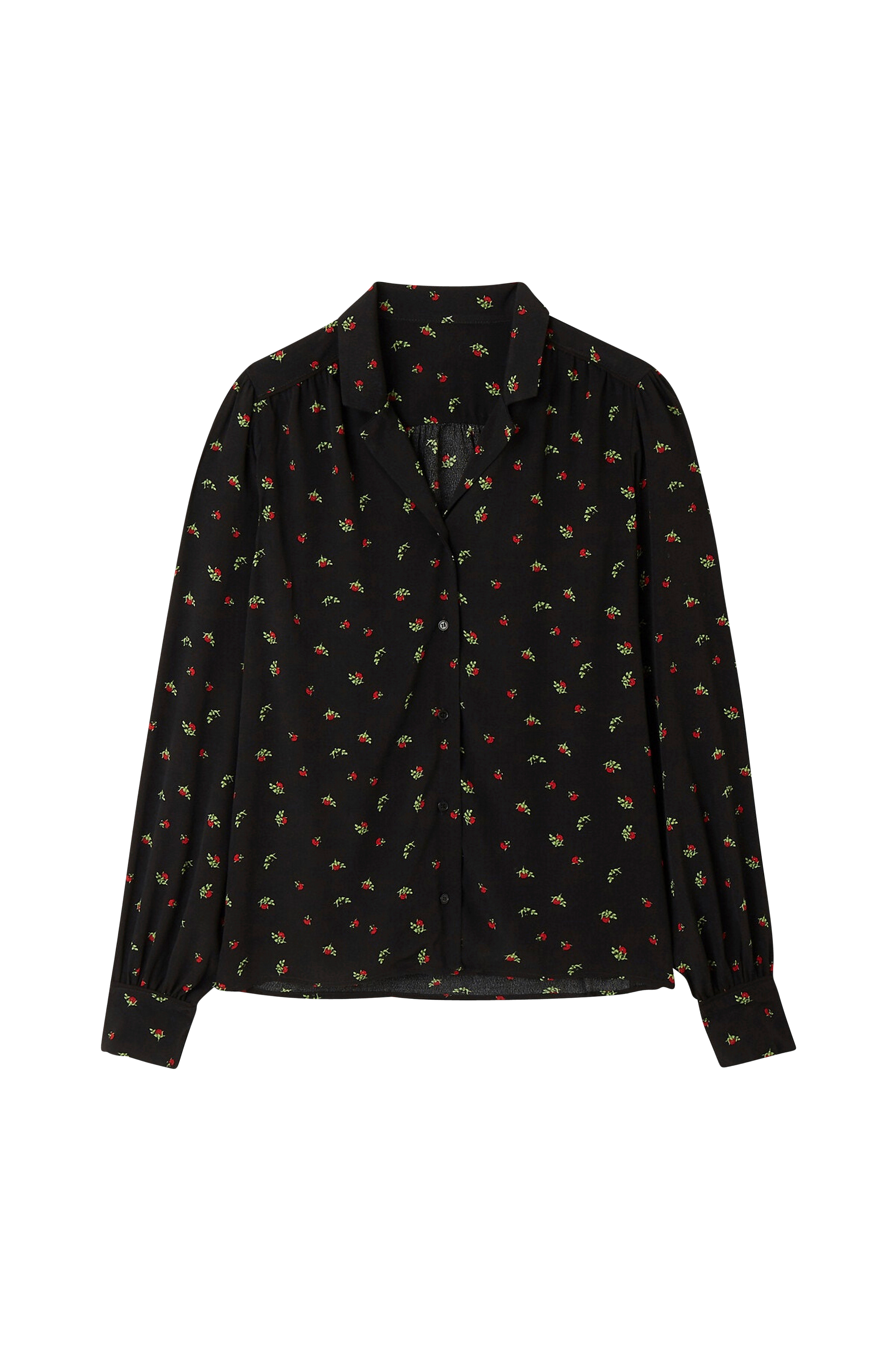 Pienikuvioinen, retrohenkinen ja romanttinen paita. Kauniisti laskeutuvaa viskoosia. Yksityiskohdat - Pitkät hihat - Suora malli - Kaulus ja käänteet - Painettu kuvio Materiaali ja hoito-ohje - 100% viskoosia - Hienopesu 30° - Silitys keskilämmöllä/ei valkaisuainetta - Ei rumpukuivausta - Ei kemiallista pesua Lisätietoja - Pituus 65 cm koossa 38