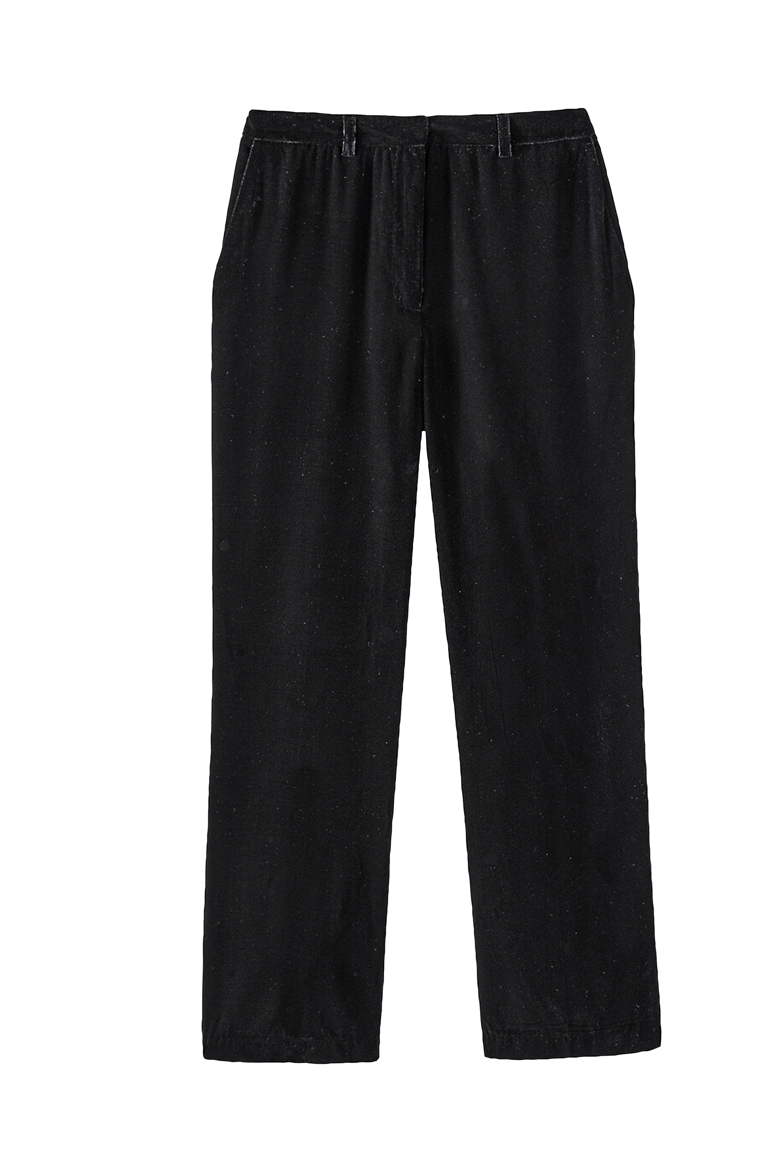 Trendikkäät, levenevät, nilkkapituiset housut. Pehmeää samettia.