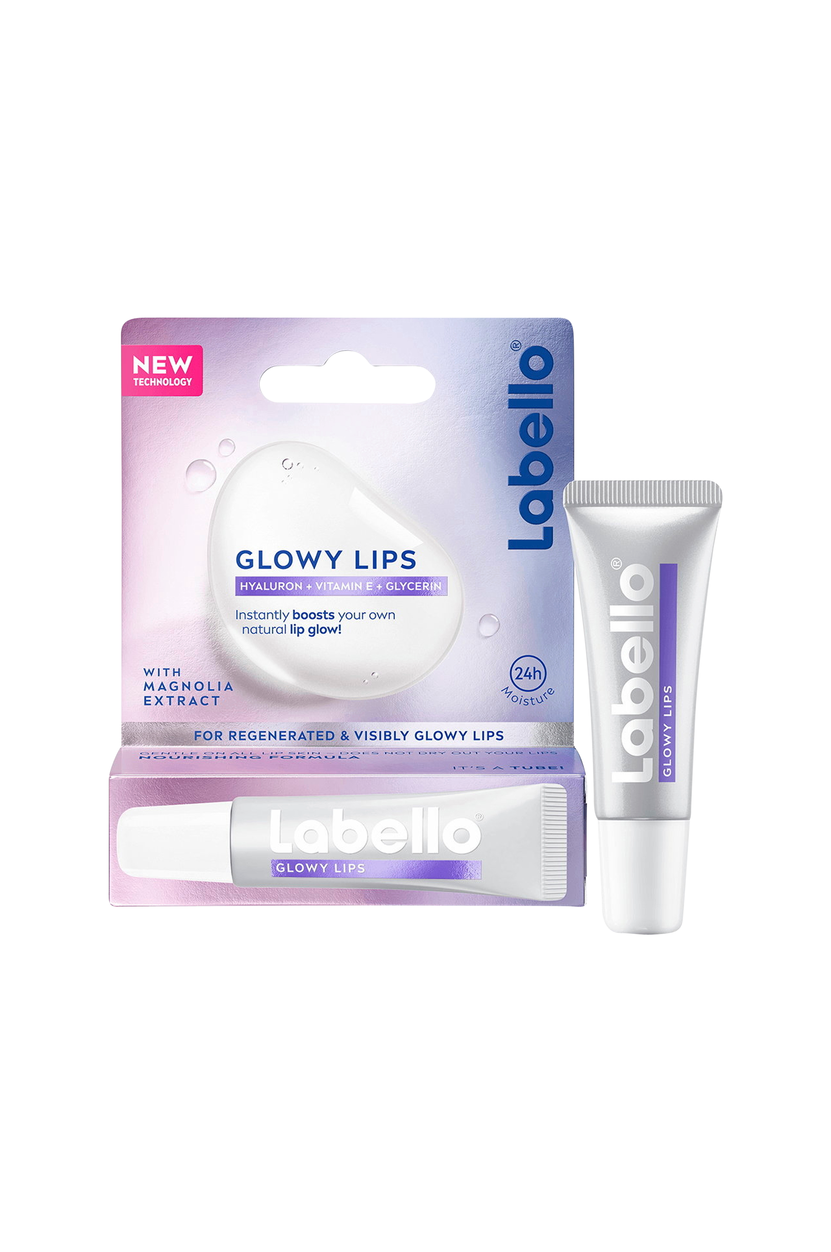 Labello® Glowy Lips lisää välittömästi huulten luonnollista hehkua. Tämä huulivoide sisältää erittäin kosteuttavaa koostumustamme, jossa on hyaluronihappoa, E-vitamiinia, glyseriiniä ja magnoliaa, ja se tarjoaa 24 tunnin kosteutta. Se uudistaa ja lohduttaa kuivia huuliasi jättäen niille sileämmän koostumuksen. Labello® on hellävarainen kaikille huulten iholle eikä kuivata huulia.