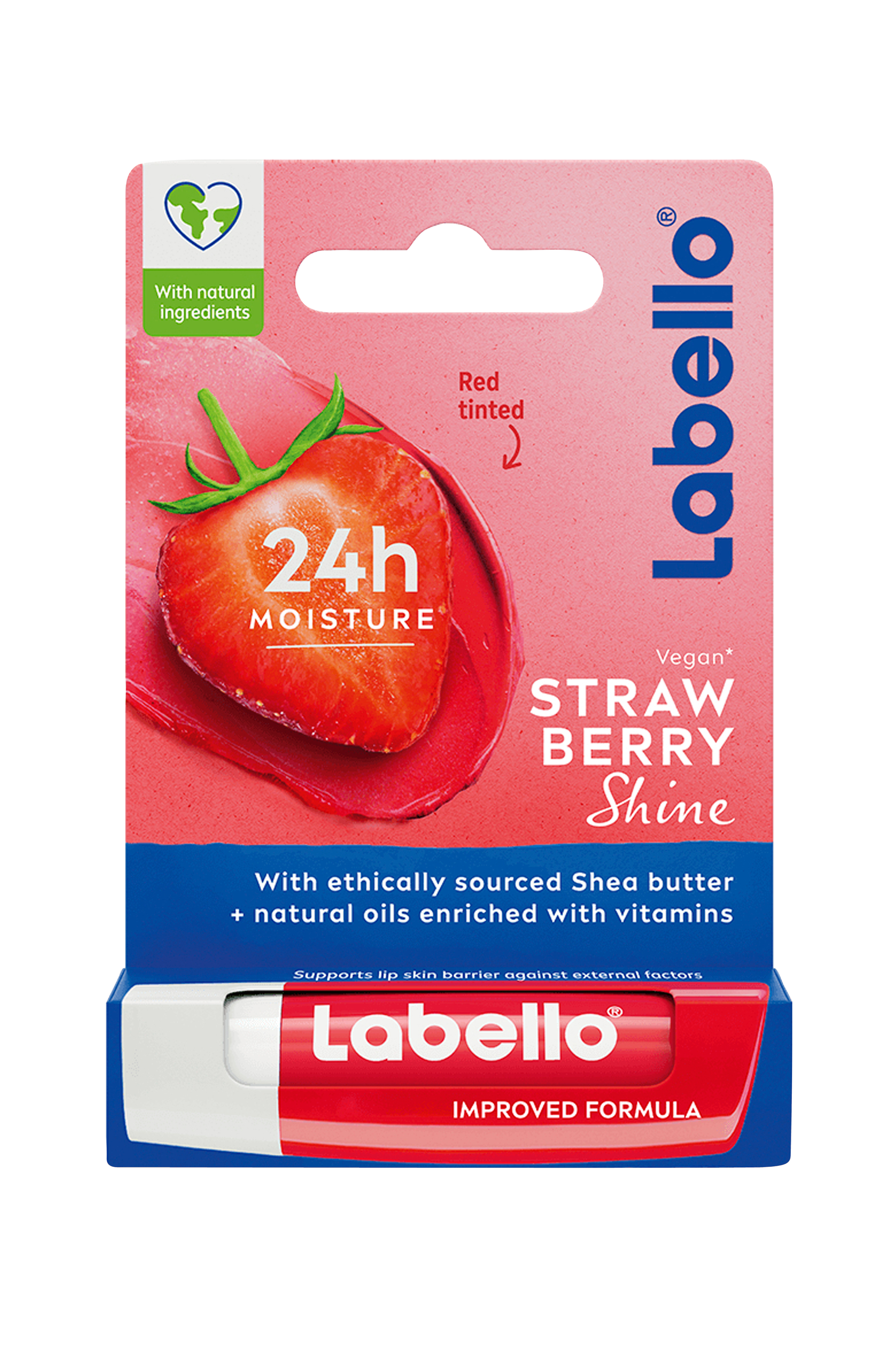 Labello strawberry shine -huulivoiteessa on ihastuttava mansikka-aromi ja kaunis syvänpunainen väri. Ainutlaatuinen koostumus sisältää hohtavaa pigmenttiä ja imeytyy välittömästi huuliin. Kosteuttaa 24 tuntia. Helppo levittää, antaa tasaisen tuloksen. Saat kauniit, kiiltävät ja kosteutetut huulet koko päiväksi ja joka päivä. Ei sisällä mineraaliöljyjä. Dermatologisesti testattu.