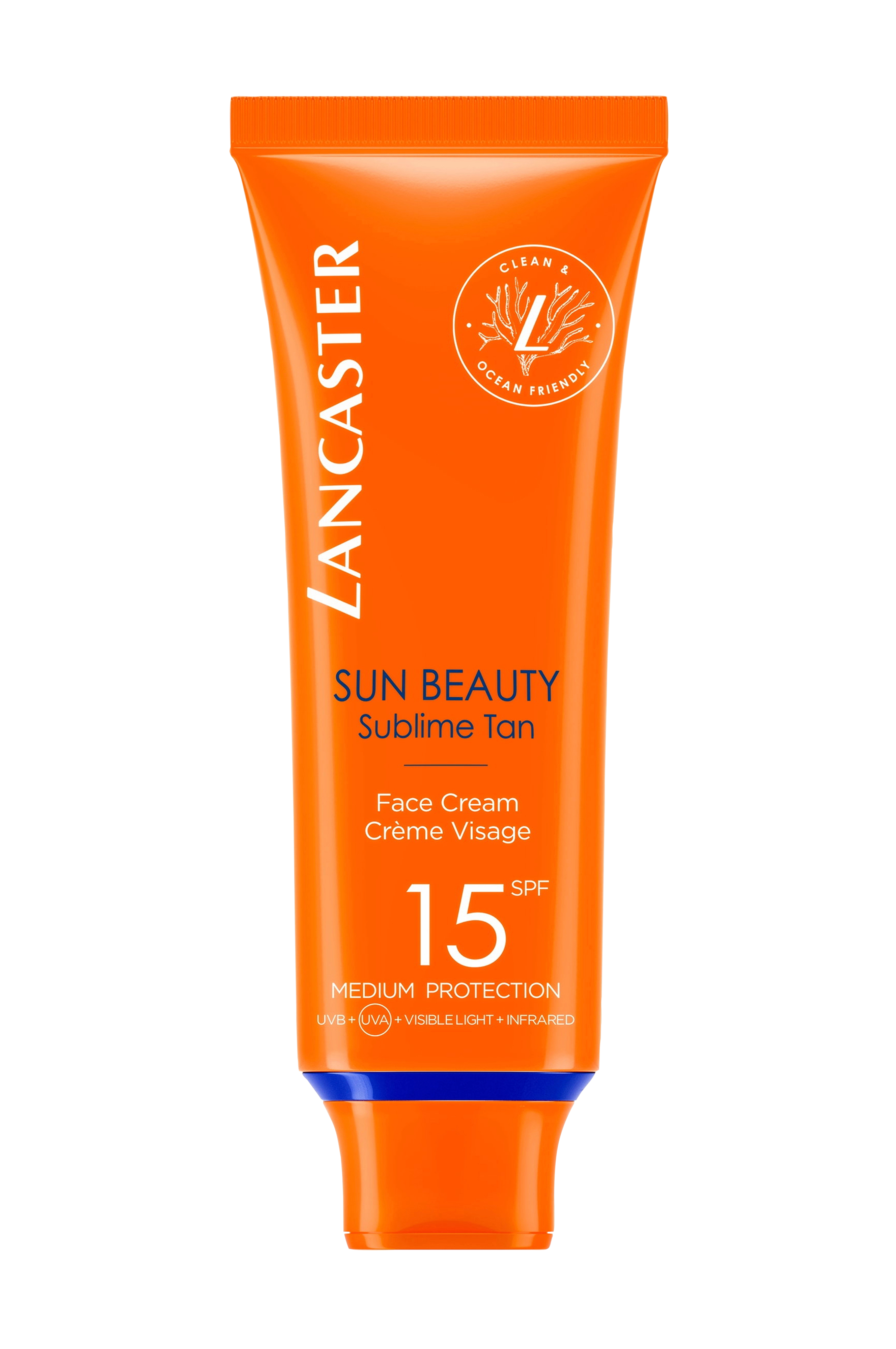 Tutustu Lancasterin edistyneeseen aurinkosuojavoiteeseen: Sun Beauty Face Cream SPF15. Aistillinen ja meriystävällinen aurinkovoide vangitsee 100% auringon säteilystä.* Auttaa myös korjaamaan auringon aiheuttamia ihovaurioita.