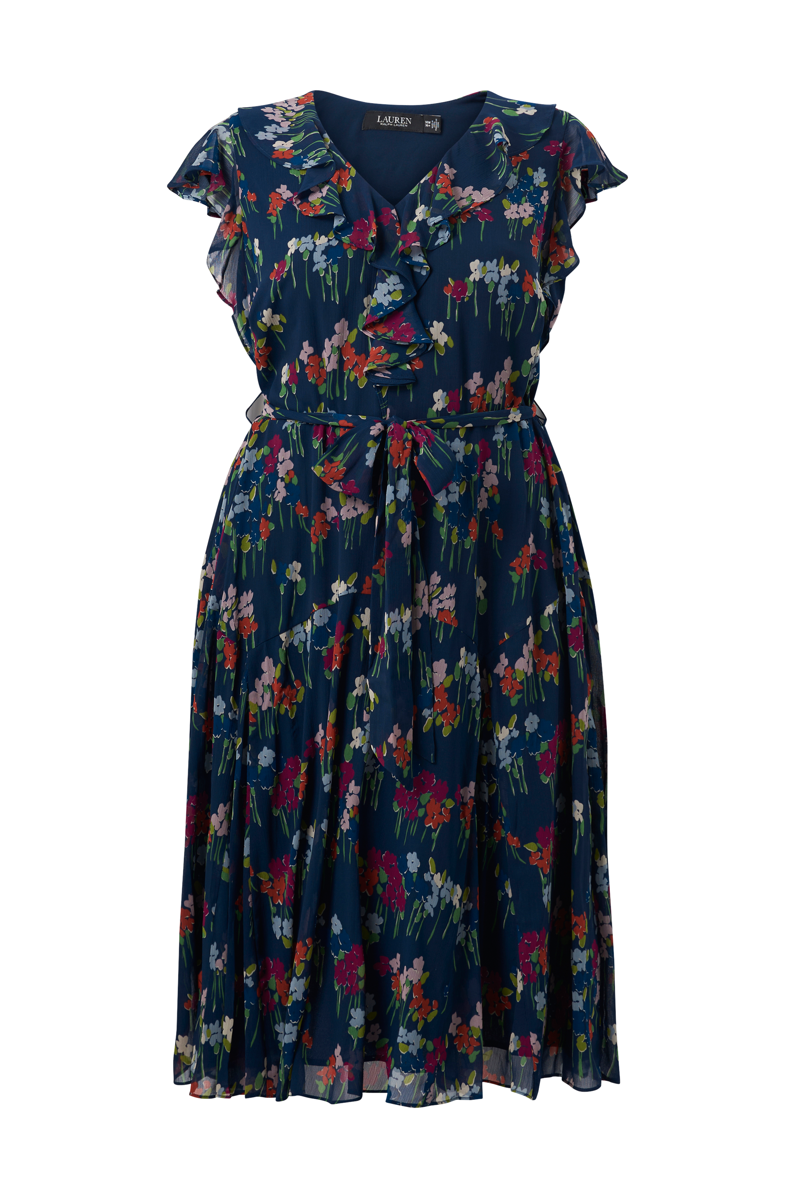 • V-muotoinen kaula röyhelöllä kauttaaltaan • Lyhyet röyhelöhihat • Kudottu vuori • Irrotettava punosvyö vyötäröllä • Plus-koot • Pituus: 122 cm koossa 48 • Tuote sisältää kierrätettyä materiaalia, jonka käyttö vähentää jätteen määrää ja säästää luonnonvaroja.