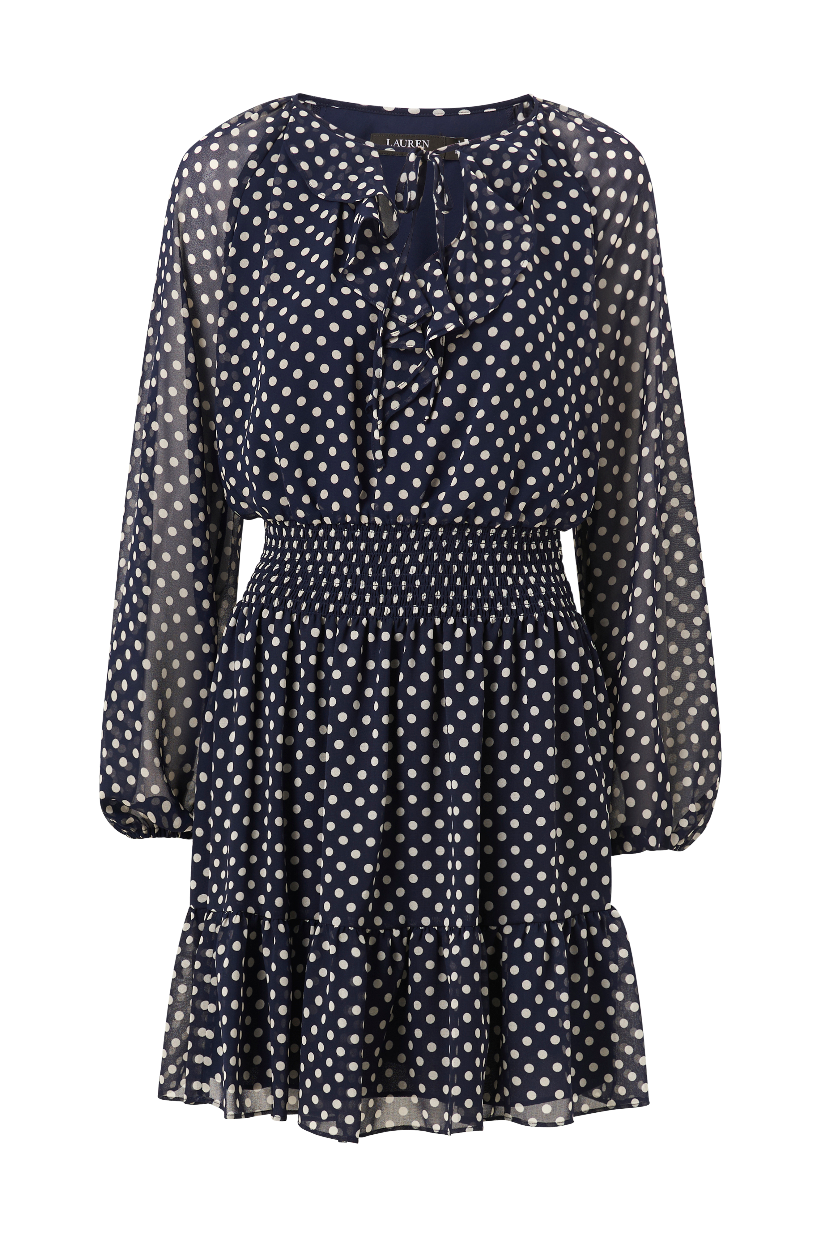 • Mekko sifongista • Halkio röyhelöllä ja nyörillä edessä • Rypytys vyötäröllä • Läpinäkyvät hihat joustavilla hihansuilla • Röyhelö alhaalla • Kudottu vuori • Pituus: 93 cm koossa 36 • Tuote sisältää kierrätettyä materiaalia, jonka käyttö vähentää jätteen määrää ja säästää luonnonvaroja.
