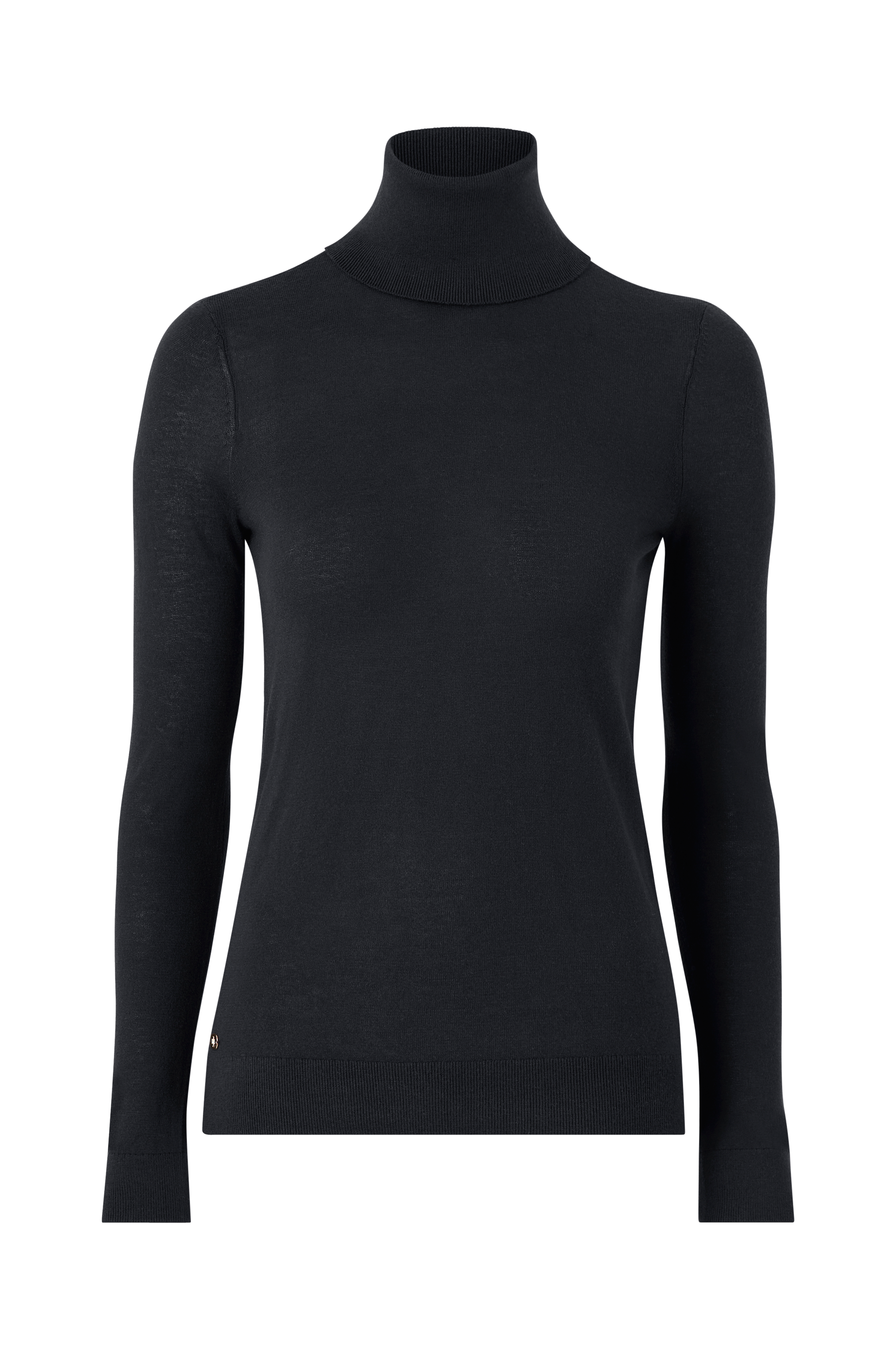 Ohut neulepusero erittäin pehmeää modaali-silkkisekoitetta. Korkea joustinneulepoolokaulus. Resori hihansuissa ja helmassa.