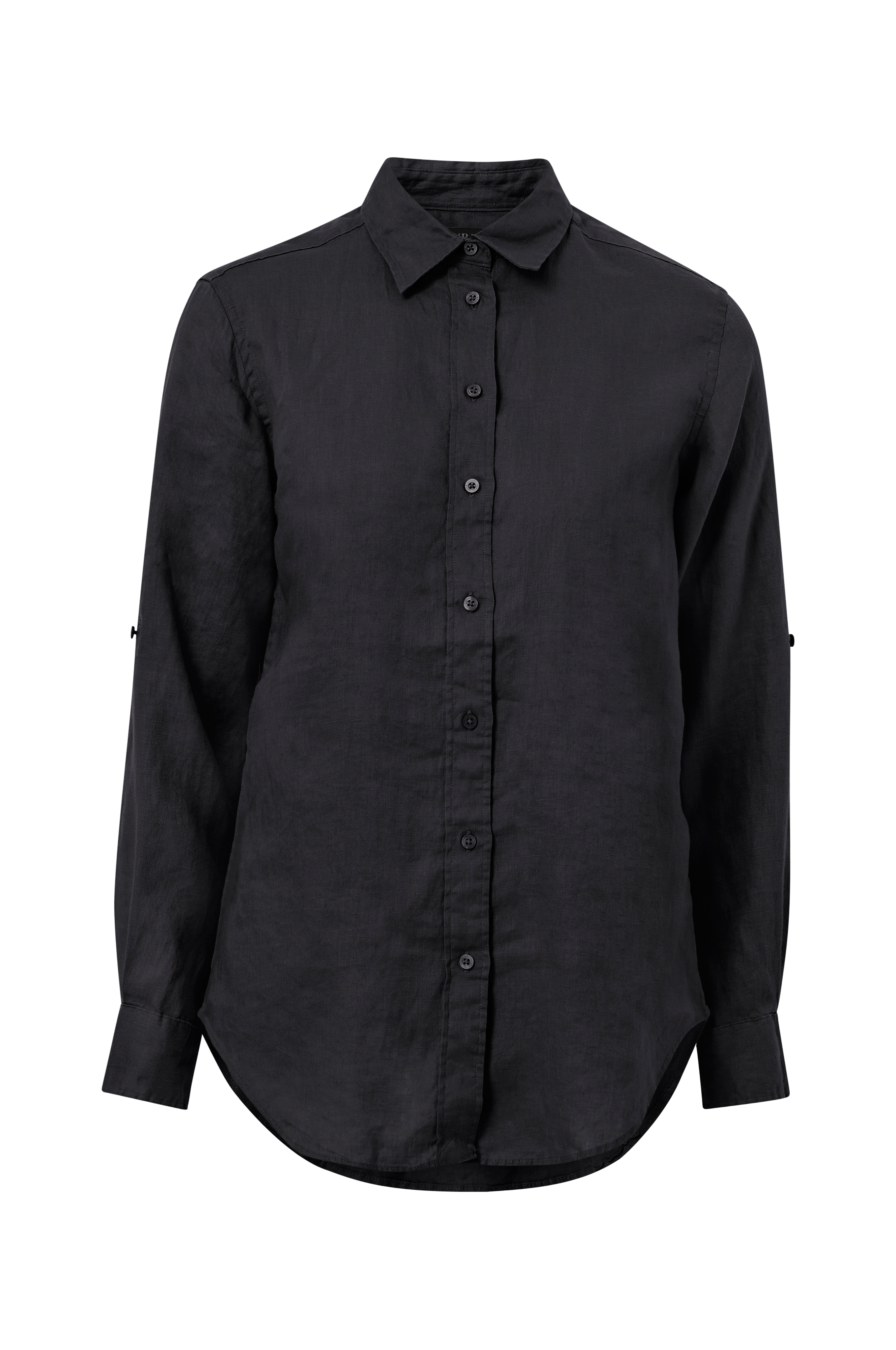 Paitapusero pellavaa. Pieni kaulus ja koristeommeltu nappilista edessä. Pitkät hihat, joissa hihansuissa kalvosin ja sisäpuolella napillinen tamppi käännettä varten.