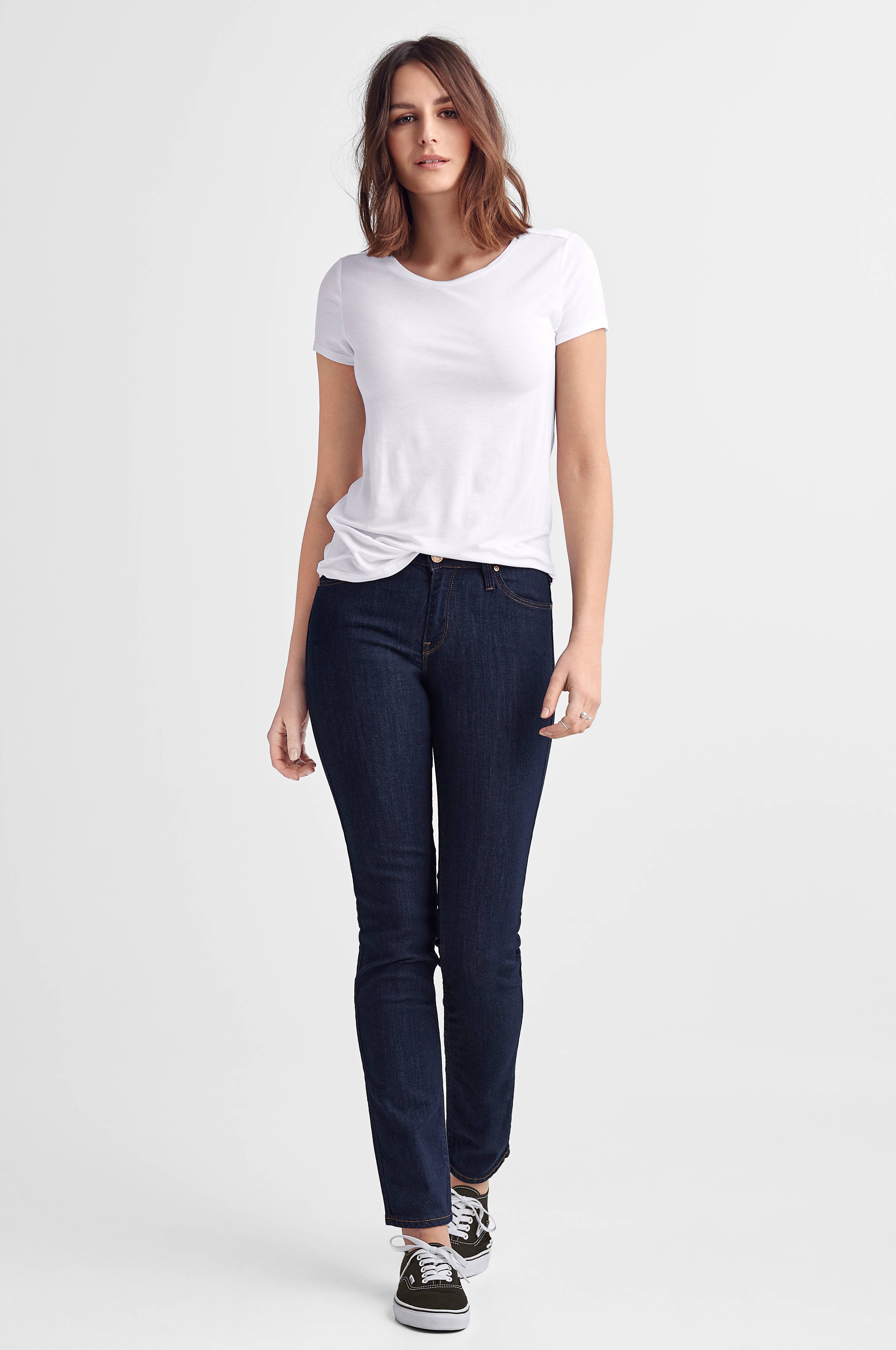 Lee Elly Slim -farkut myötäilevää stretchdenimiä. Kapea istuvuus, kapeat reidet ja suorat lahkeet. Klassinen viistaskumalli, jossa koristetikkaukset. Etuhalkiossa vetoketju. Lahkeensuu n. 30 cm.