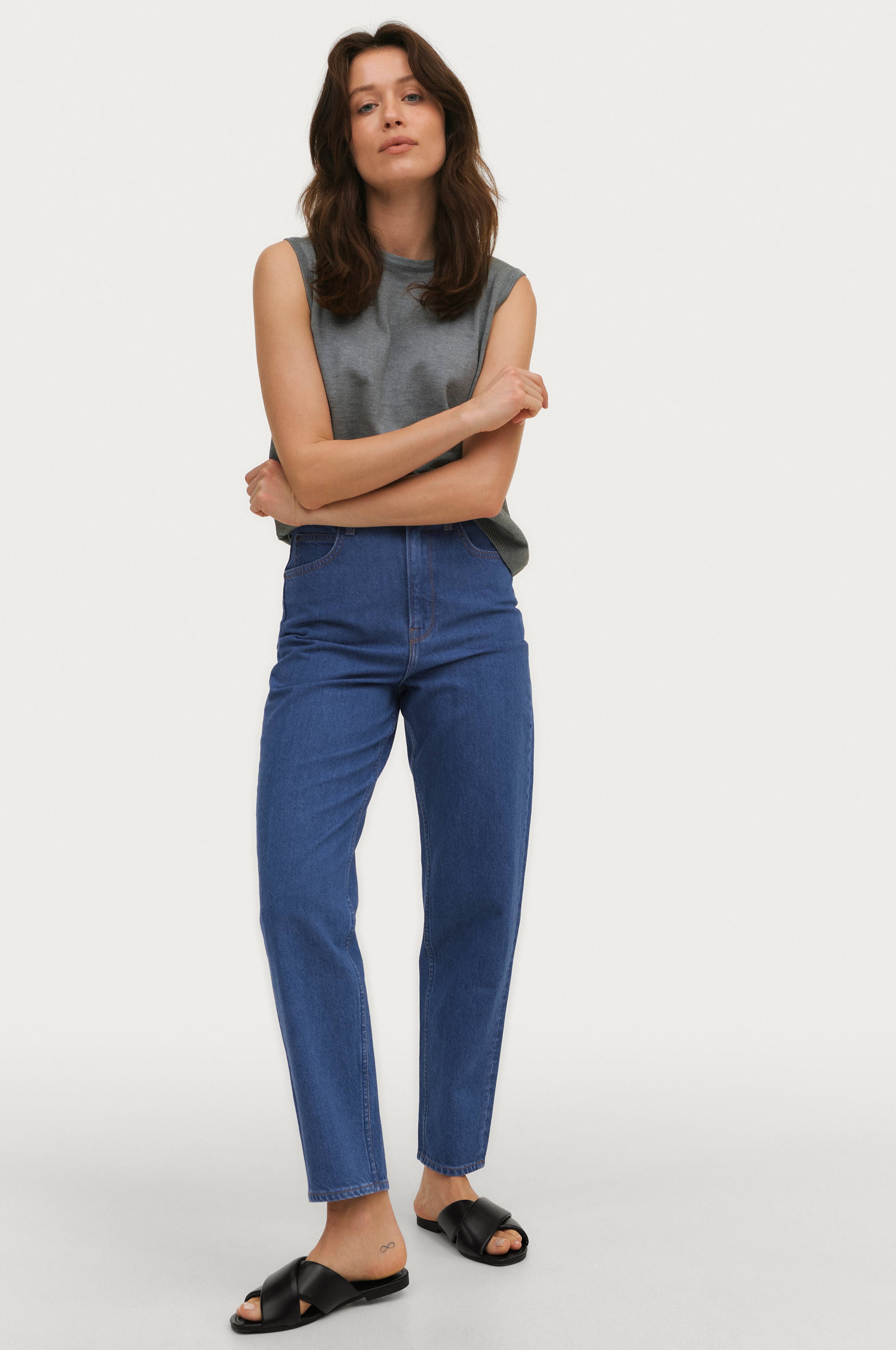 Leveät lahkeet ja hieman kapenevat lahkeensuut. Korkea vyötärö ja vetoketjullinen etuhalkio. Kolme etutaskua ja kaksi takataskua. Lahkeen sisäpituus n. 70 cm koossa 31.