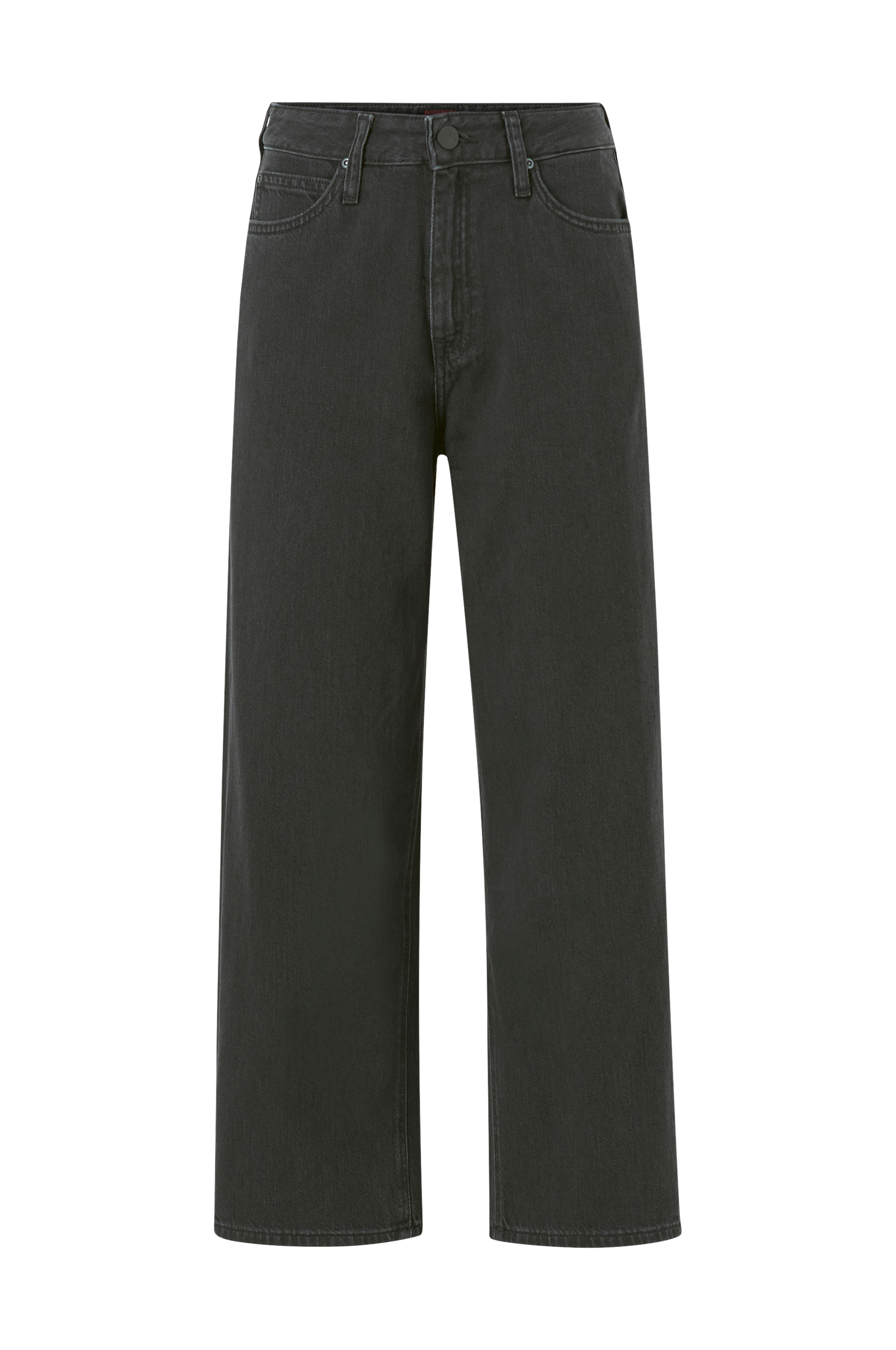 Lee Wide Leg -farkut denimiä tai vakosamettia (mustat). Leveät lahkeet, viisi taskua ja vetoketjullinen etuhalkio.
