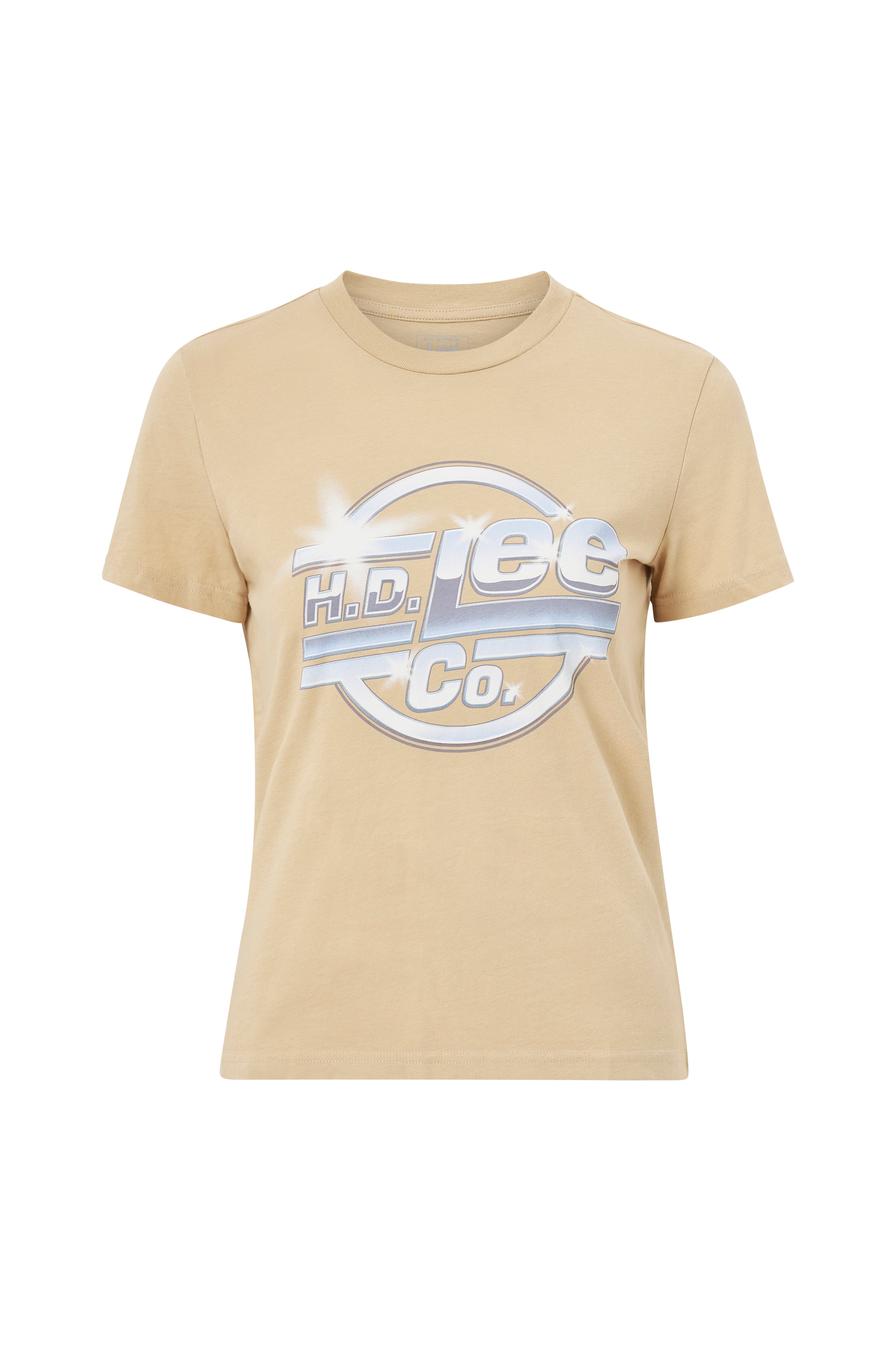 Pusero puuvillatrikoota. Painatus edessä. Kapea malli, lyhyet hihat ja pyöreä joustinneulospääntie.