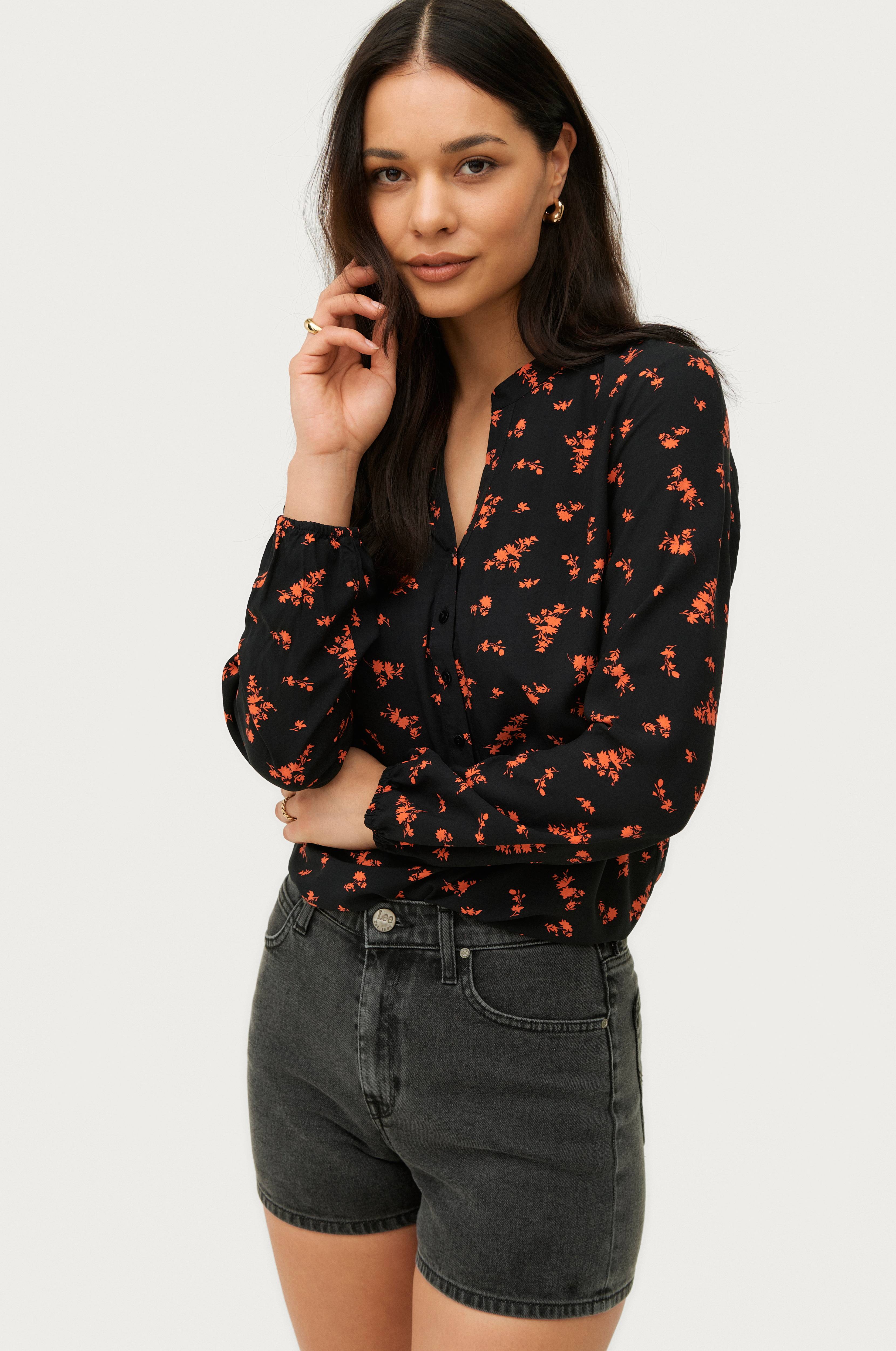 Korkea vyötärö ja lyhyet, leveät lahkeet. Vetoketju edessä, kolme etutaskua sekä kaksi päälleommeltua takataskua. Lahkeen sisäpituus n. 8 cm koossa 27.