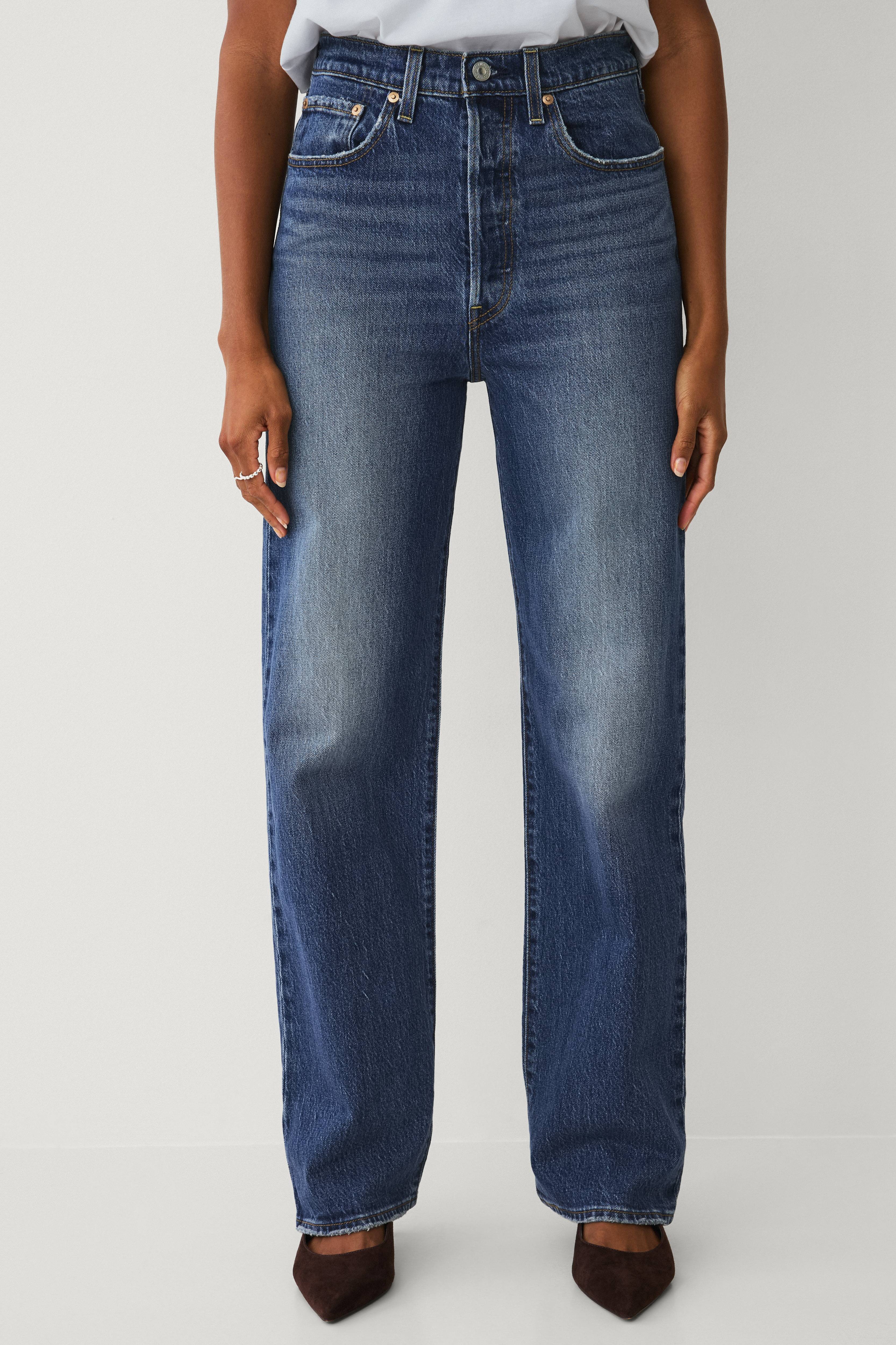 Malli on 173 cm pitkä ja hänellä on päällään koko W27/L31