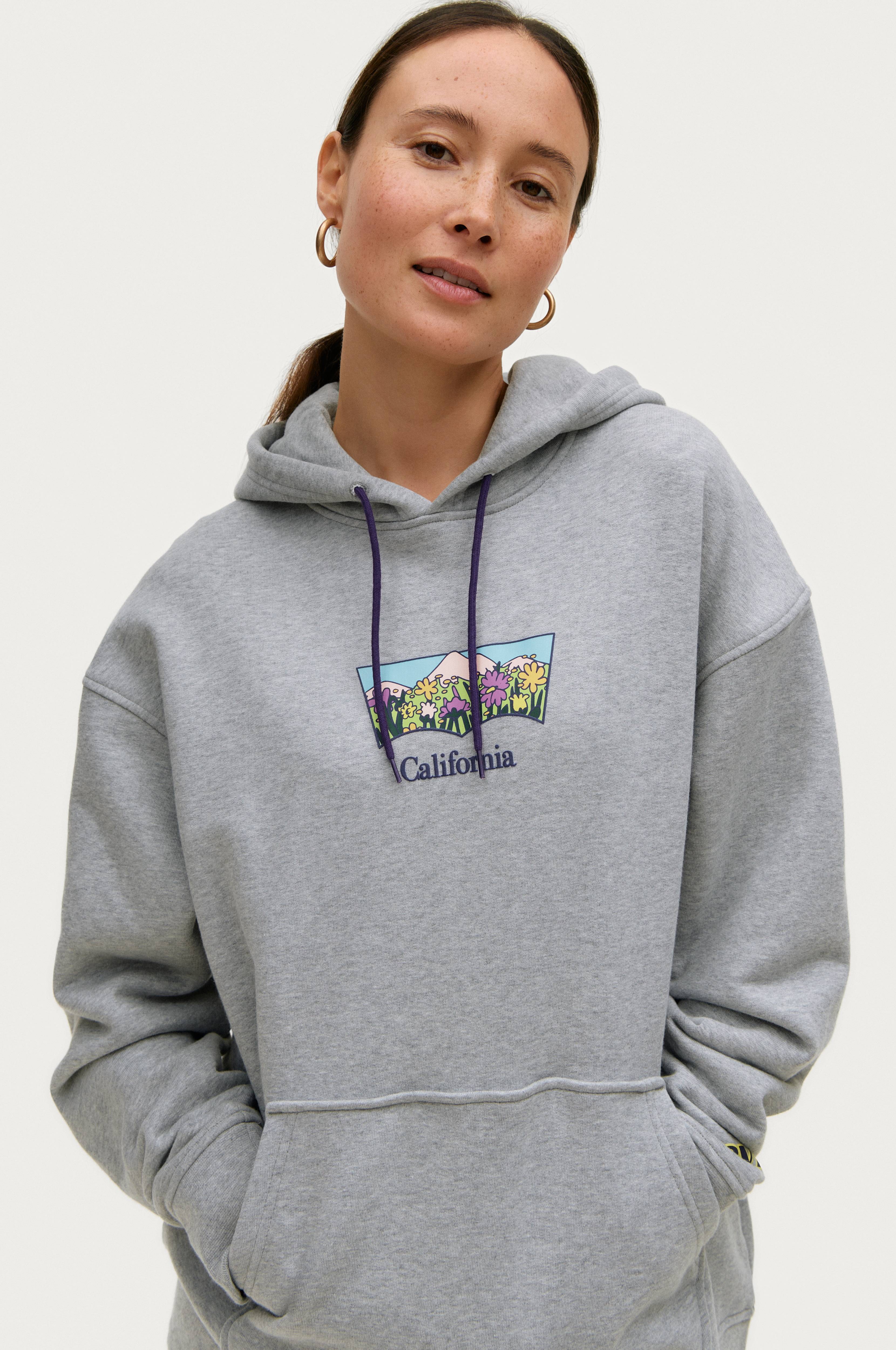 Levi's Relaxed Graphic Hoodie -huppari, jossa painatus edessä. Resori hihansuissa ja helmassa. Edessä hupparitasku ja hupussa nyöri.