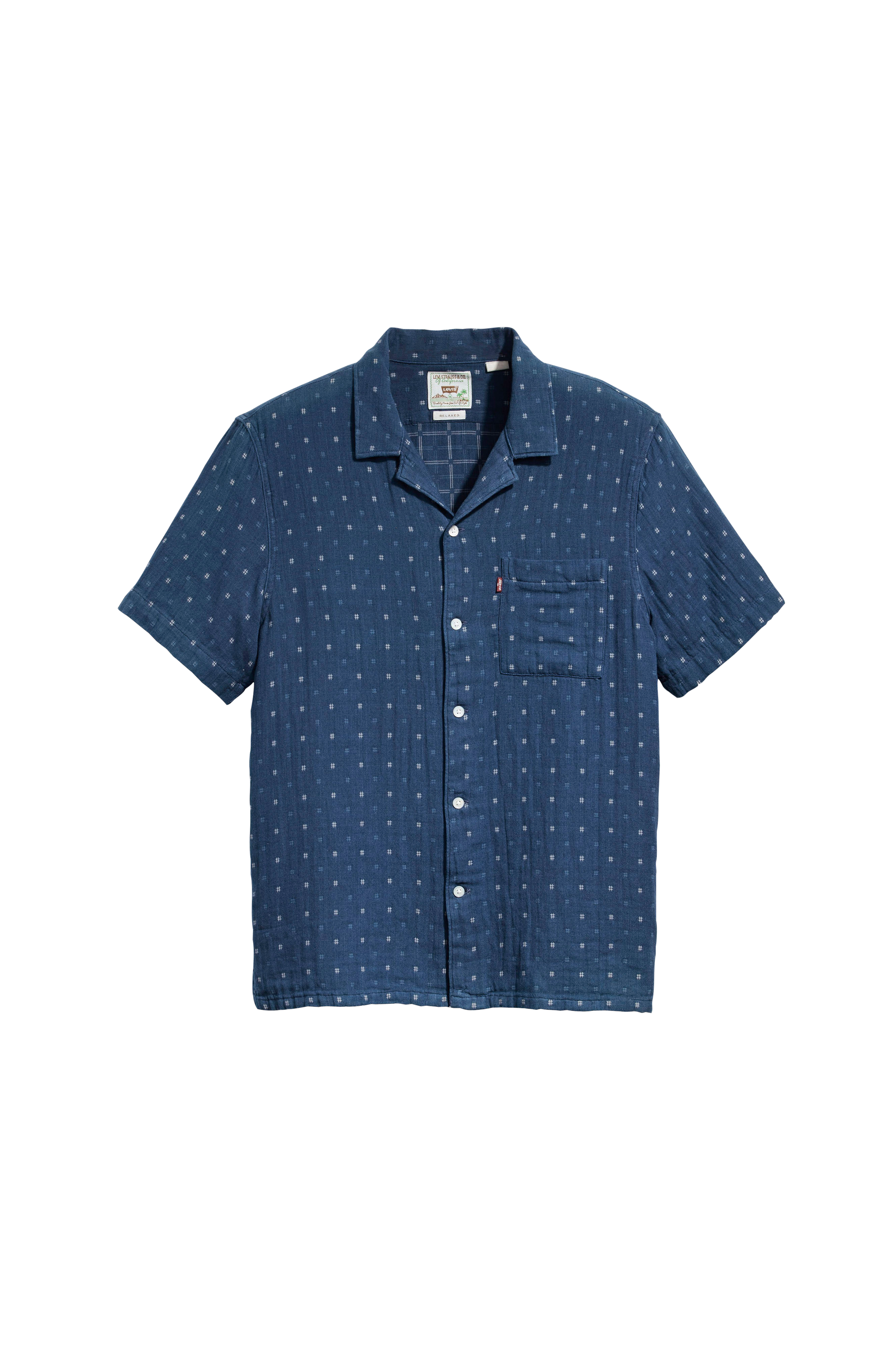 Lyhythihainen, kukallinen Levi's-kauluspaita. Klassinen kaulus ja rintatasku. Toisella sivulla merkki. Suora helma. Normaali istuvuus.