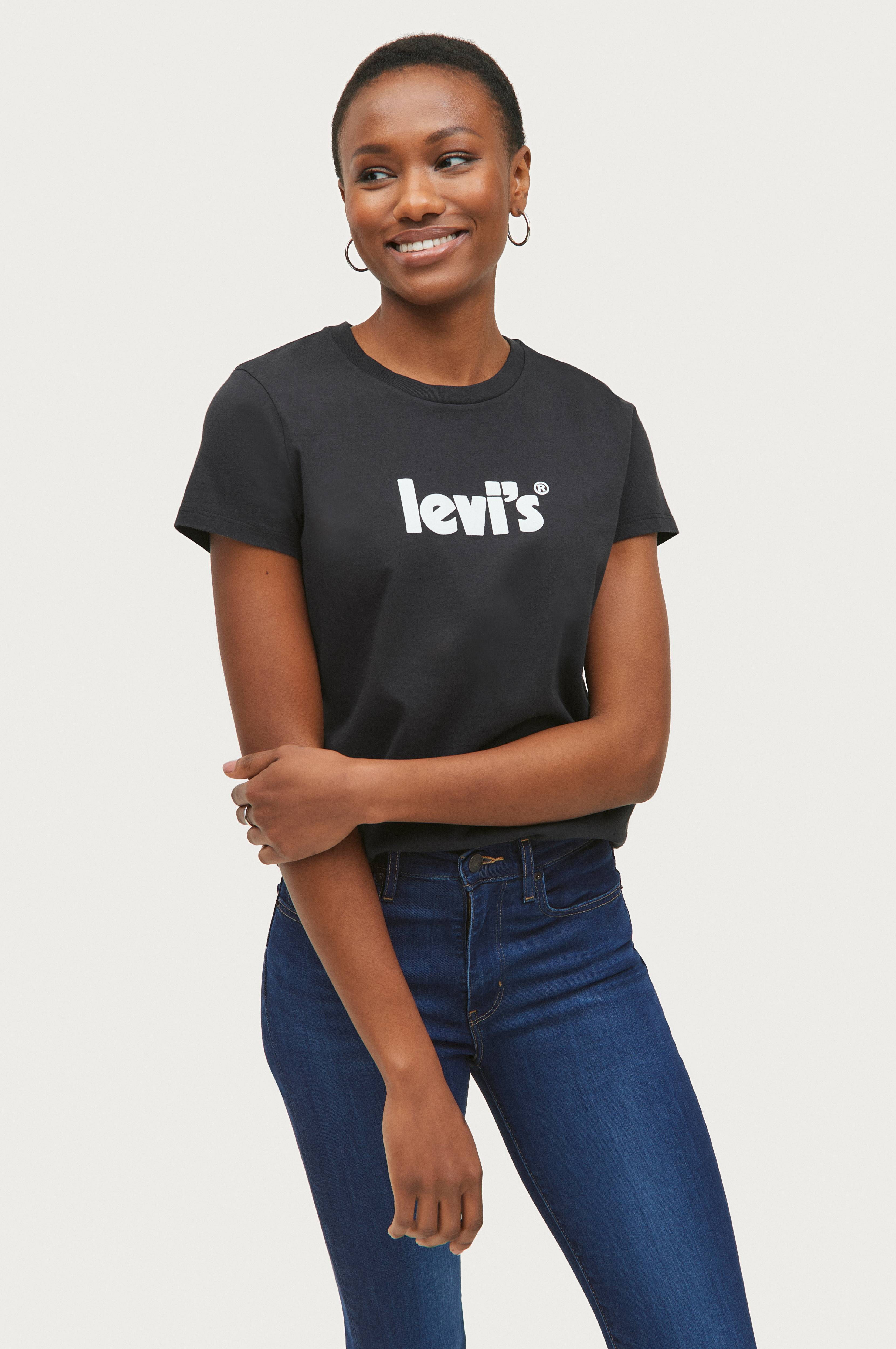 Levi s The Perfect Tee -T-paita. Painettu logo rinnassa. Lyhyet hihat. Avara pääntie, jossa resori. Pituus n. 60 cm koossa M.