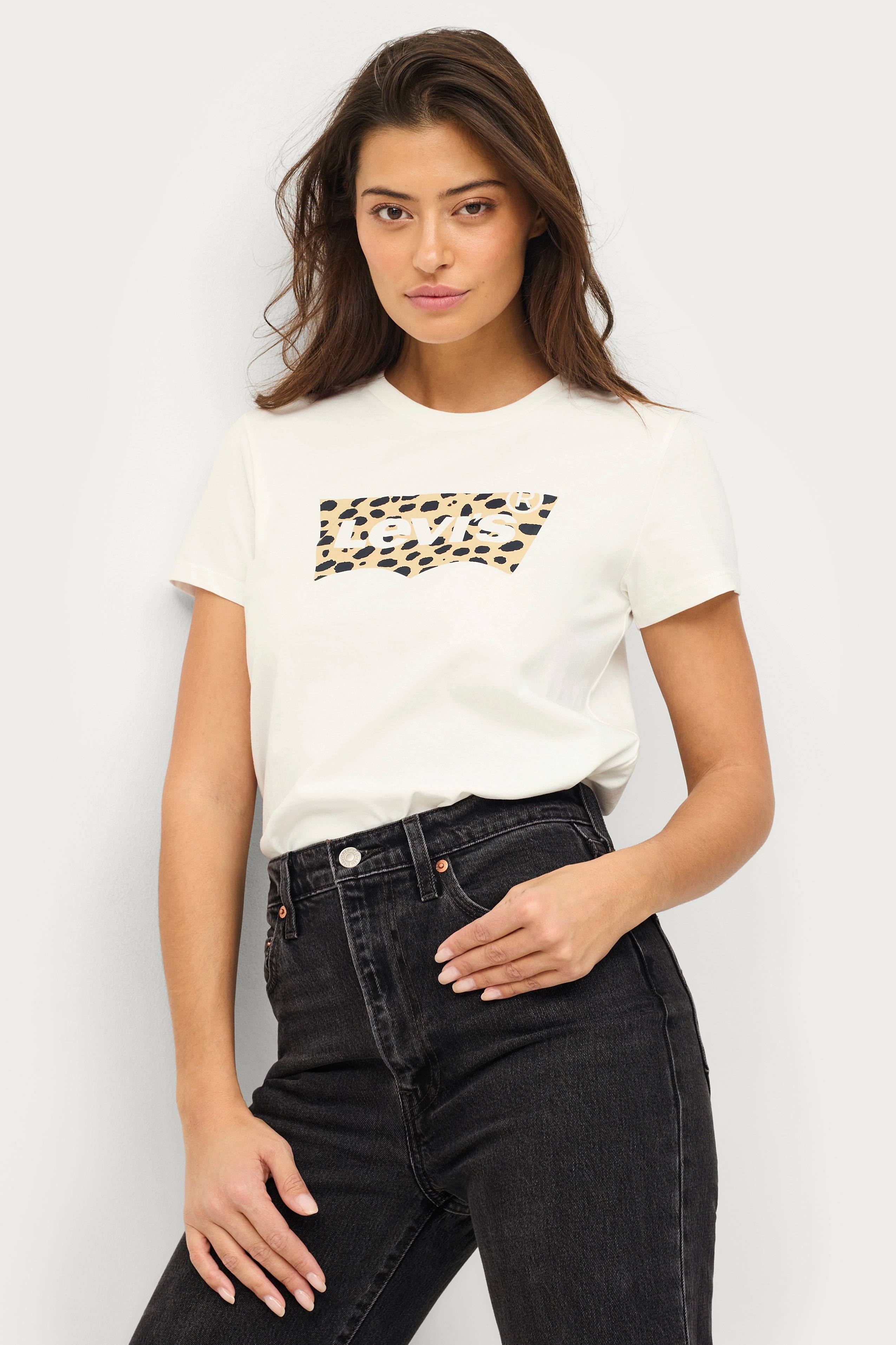 Levi s The Perfect Tee -T-paita. Painettu logo rinnassa. Lyhyet hihat. Avara pääntie, jossa resori. Pituus n. 60 cm koossa M.