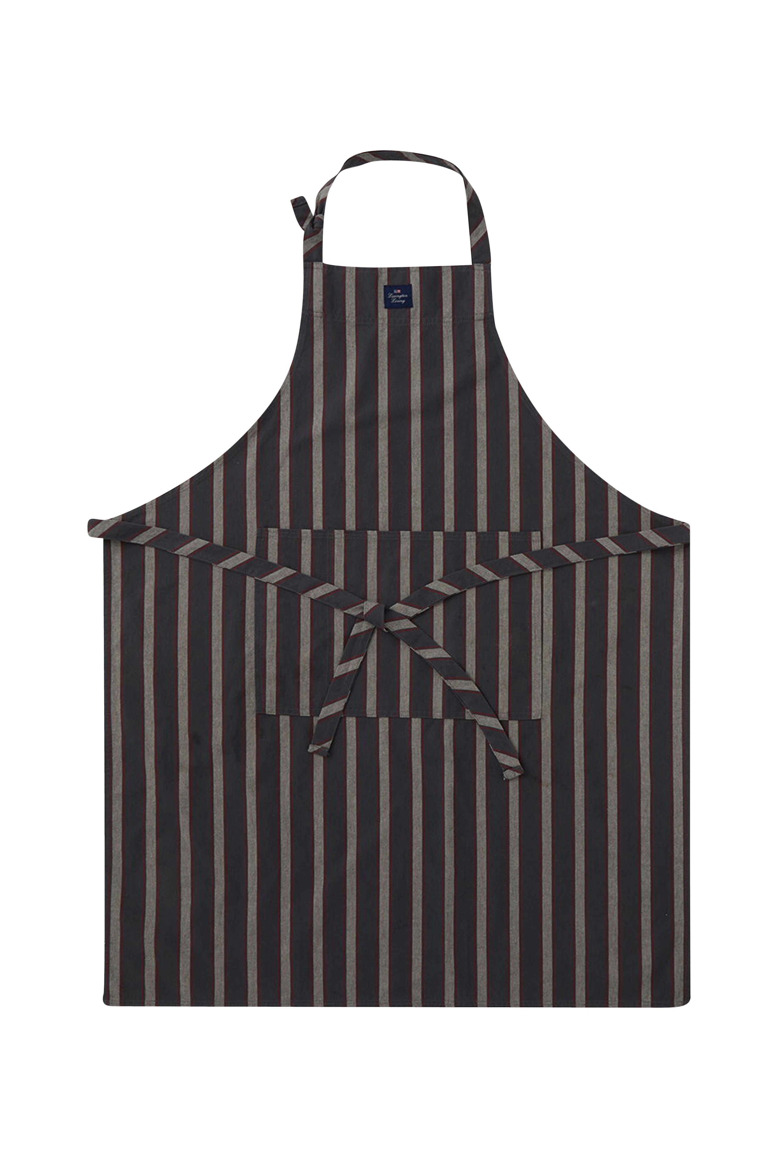 Roiskeita? Ei hätää, Lexingtonin klassisessa raidallisessa esiliinassa voit valmistaa sesongin kaikki herkut tyylillä. Niskassa on säädettävä nauha ja vyötäröllä solmimisnauhat, joilla istuvuutta on helppo mukauttaa ja pitää vaatteet kokonaan suojassa. Lisäksi rintatasku on riittävän tilava keittiövälineiden säilytykseen, joten ruoanlaitto ei ole koskaan ollut helpompaa! Esiliina ei sisällä haitallisia aineita, joiden käyttö on yleistä tekstiilituotannossa. Pesuohje: Pesu lämpimällä vedellä (40°), älä käytä valkaisuainetta, rumpukuivaus matalalla lämmöllä, silitys keskikorkealla lämmöllä ja kemiallinen pesu sallittu.