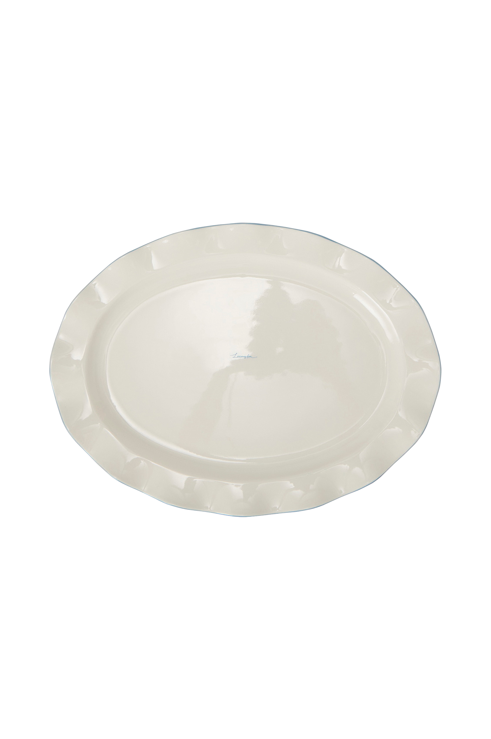 Korosta pöytäsi kattausta tällä upealla soikealla lautasella, jossa on erottuvat Wavy reunat ja käsin maalatut keskisiniset yksityiskohdat. Ainutlaatuinen muotoilu luo kauniin vaikutelman, joka muuttaa minkä tahansa kokoontumisen erityiseksi tilaisuudeksi. Tämä rajoitettu erä on valmistettu korkealaatuisesta kivitavarasta, jossa on kiiltävä lasituspinta, ja siinä yhdistyvät poikkeuksellinen kestävyys ja ajaton tyylikkyys. Se on osa yhteensopivaa kokoelmaa, ja se sopii kauniisti yhteen sopivan kakkutelineen, tarjoilijan ja lautasten kanssa yhtenäisen ilmeen luomiseksi. Tämä monikäyttöinen lautanen kestää asianmukaisella hoidolla koko eliniän, ja se on sekä astianpesukoneessa että mikroaaltouunissa pestävä jokapäiväistä mukavuutta varten.