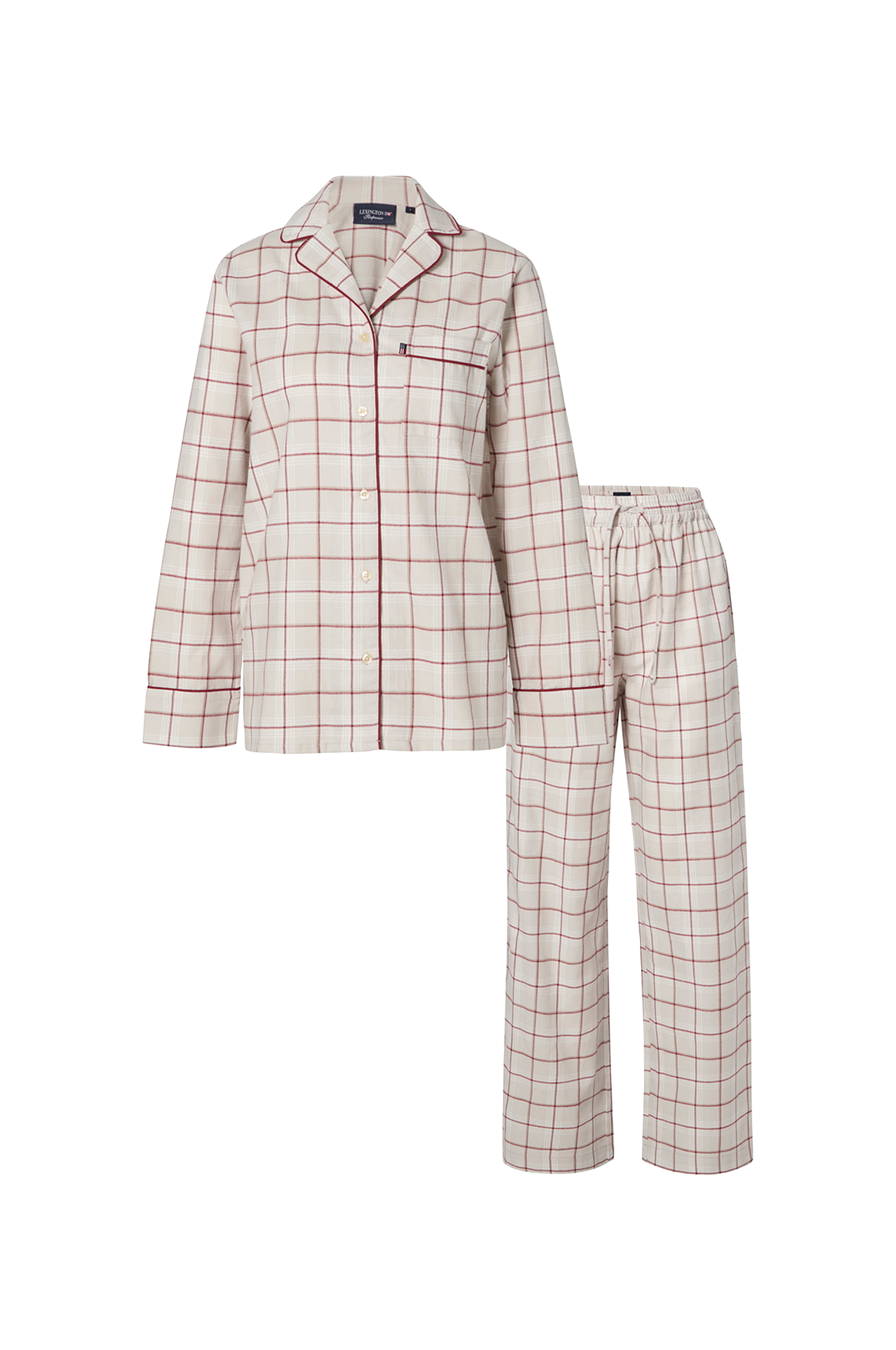 Syleile mukavuutta ja tyyliä hienostuneen harmaan moniruutuisen puuvillaruutuisen flanellipyjamasetin kanssa. Tämä ylellinen setti on valmistettu 100-prosenttisesta puuvillaflanellista, ja se tarjoaa täydellisen tasapainon pehmeyttä ja hengittävyyttä levollisia öitä ja rentoja aamuja varten. Klassinen ruutukuvio tuo ajatonta eleganssia unipukukokoelmaasi, ja harkitut suunnittelun yksityiskohdat, kuten hienostunut putkitus kauluksessa, rintataskussa ja hihansuissa, kohottavat kokonaisestetiikkaa. Rentoon istuvassa paidassa on kätevä rintatasku ja helppo nappikiinnitys, kun taas mukavissa housuissa on joustava vyötärönauha, jossa on kiristysnauha täydellistä istuvuutta varten. Tämä Holiday 25 -mallistoon kuuluva pyjamasetti on ihanteellinen lahja itsellesi tai jollekin erityiselle henkilölle, sillä se tarjoaa Lexingtonille ominaista laatua ja tyyliä, joka tekee arkisista hetkistä jotain poikkeuksellista.