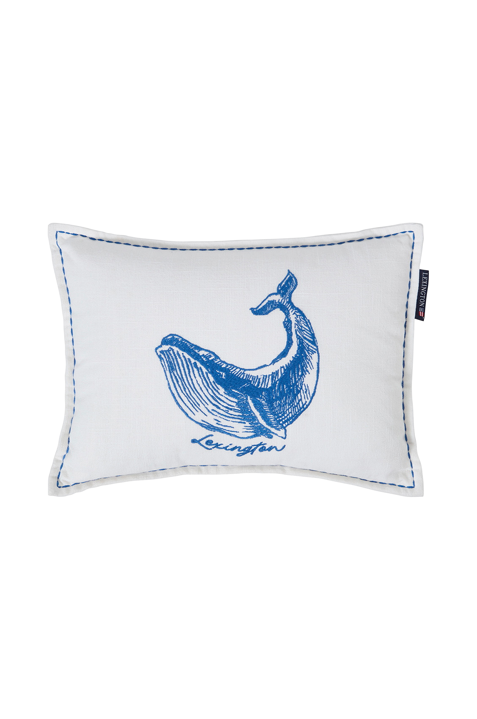 Tuo leikkisää rannikkoviehätystä kotiisi tällä pehmeästä puuvillasta valmistetulla koristetyynyllä, jossa on alkuperäiset whale -kirjontaiset kirjontapiirrokset raikkaan valkoisella ja sinisellä. Raskas tikkaus ja raakareunaiset hapsut antavat käsintehtyä rakennetta, ja piilotettu, värisävyyn sopiva vetoketju pitää viimeistelyn siistinä. Sisätyyny, jossa on polyesteritäyte, sisältyy hintaan. 100 % puuvillaa.