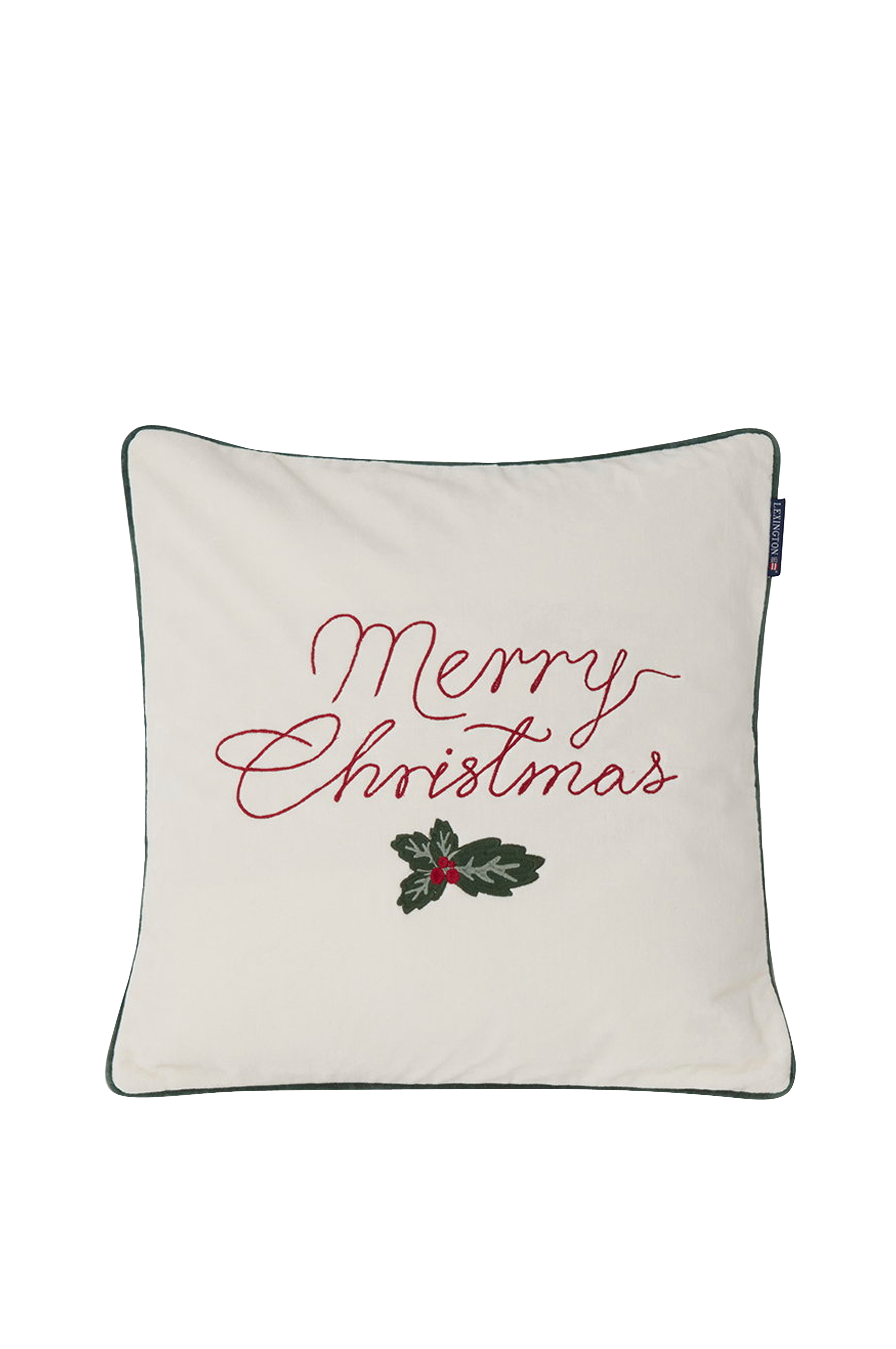 Lexingtonin tunnelmallinen "Merry Christmas" -tyynynpäällinen saa melkeinpä toivomaan, että joulu kestäisi koko vuoden! Lumivalkoinen tyyny, jossa on juhlava mistelinoksa ja "Merry Christmas" -teksti, sopii täydellisesti joulusisustukseen. Tyynynpäällisessä on terenauhayksityiskohdat ympäriinsä ja alareunassa vetoketju, joka helpottaa päällisen irrottamista pesemistä tai vaihtamista varten. Materiaali ei sisällä haitallisia aineita, joiden käyttö on yleistä tekstiilituotannossa. Pesuohje: Pesu lämpimällä vedellä (40°), älä käytä valkaisuainetta, rumpukuivaus matalalla lämmöllä, silitys keskikorkealla lämmöllä ja kemiallinen pesu sallittu.