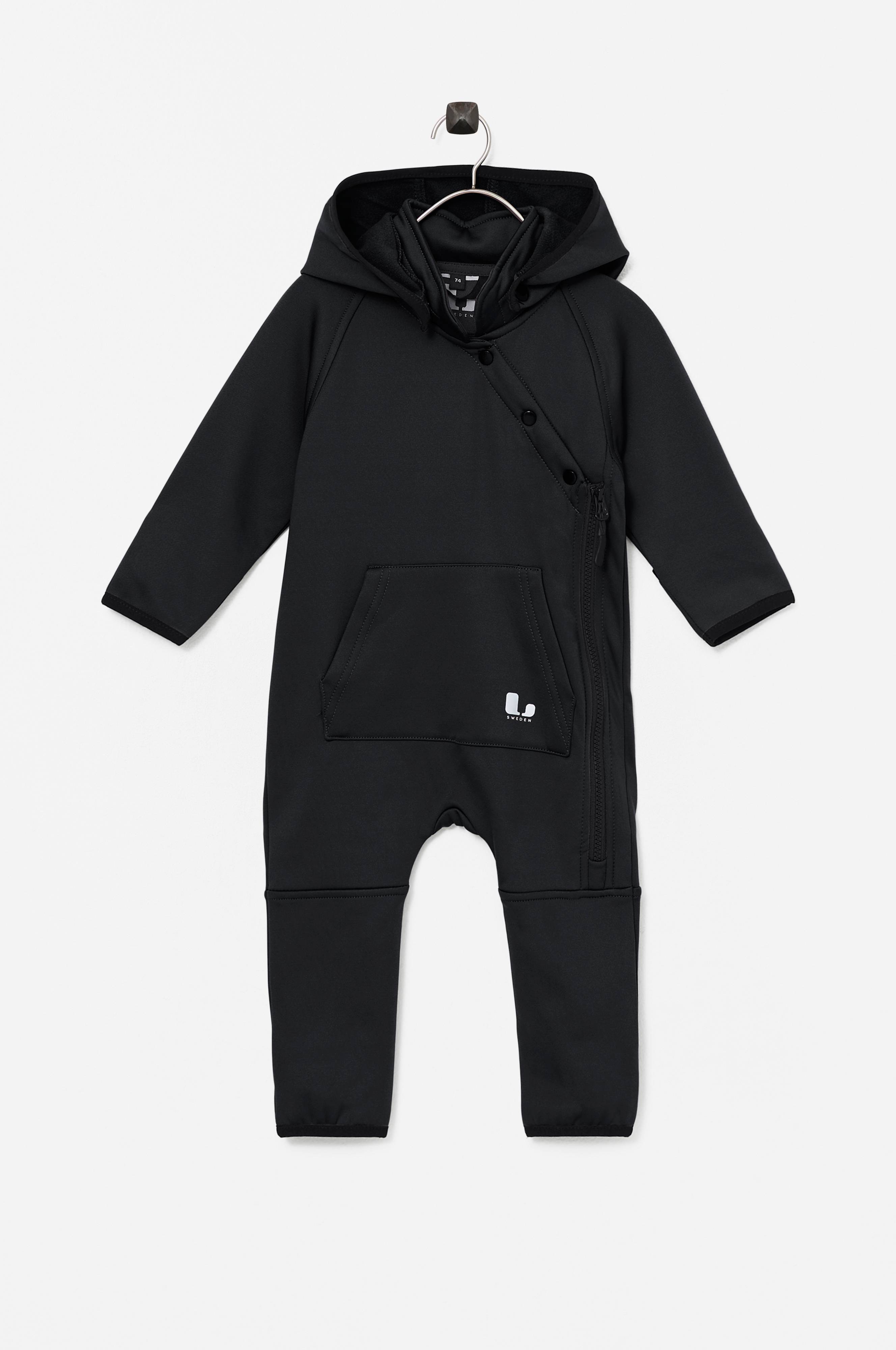 Toiminnallinen vauvanhaalari, jossa erittäin joustava istuvuus. Valmistettu powerstretch-materiaalista. Sopii lämpimäksi kerrokseksi kylminä kuukausina ja ulkohaalariksi lämpiminä. Kätevä aukko, jossa napit ja pitkälle alas ulottuva vetoketju, joka helpottaa pukemista. Materiaali on kosteutta siirtävää ja joustavaa. Sileä pinta lisää kestävyyttä. Irrotettava huppu kiinnitetään napeilla. Haalarissa on käänne käsille ja jaloille. Erittäin hyvä toiminto, jos lapsi esimerkiksi nukkuu ulkona. Sisäpuolella mikrofleeceä, joka tuntuu miellyttävältä ihoa vasten.