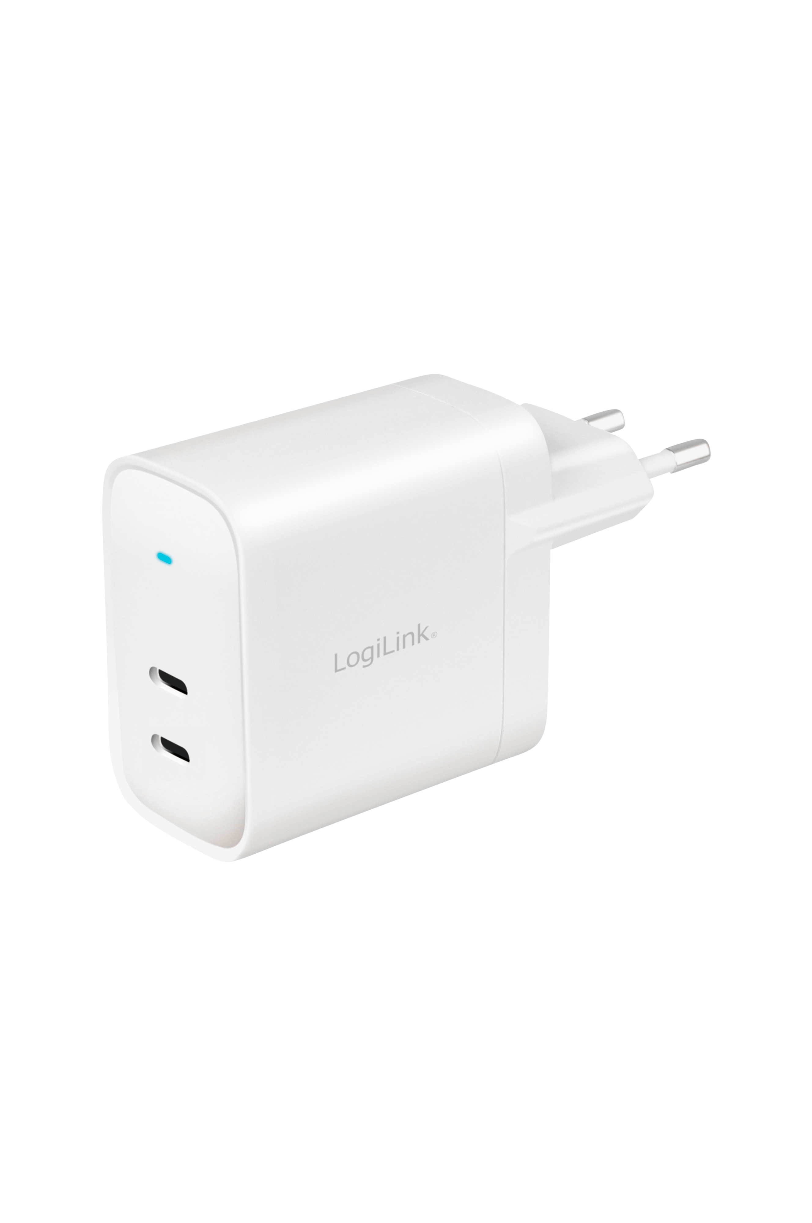 LogiLinkin kompakti USB-C PD -kaksoislaturi 40 W ja GaN-teknologia.
