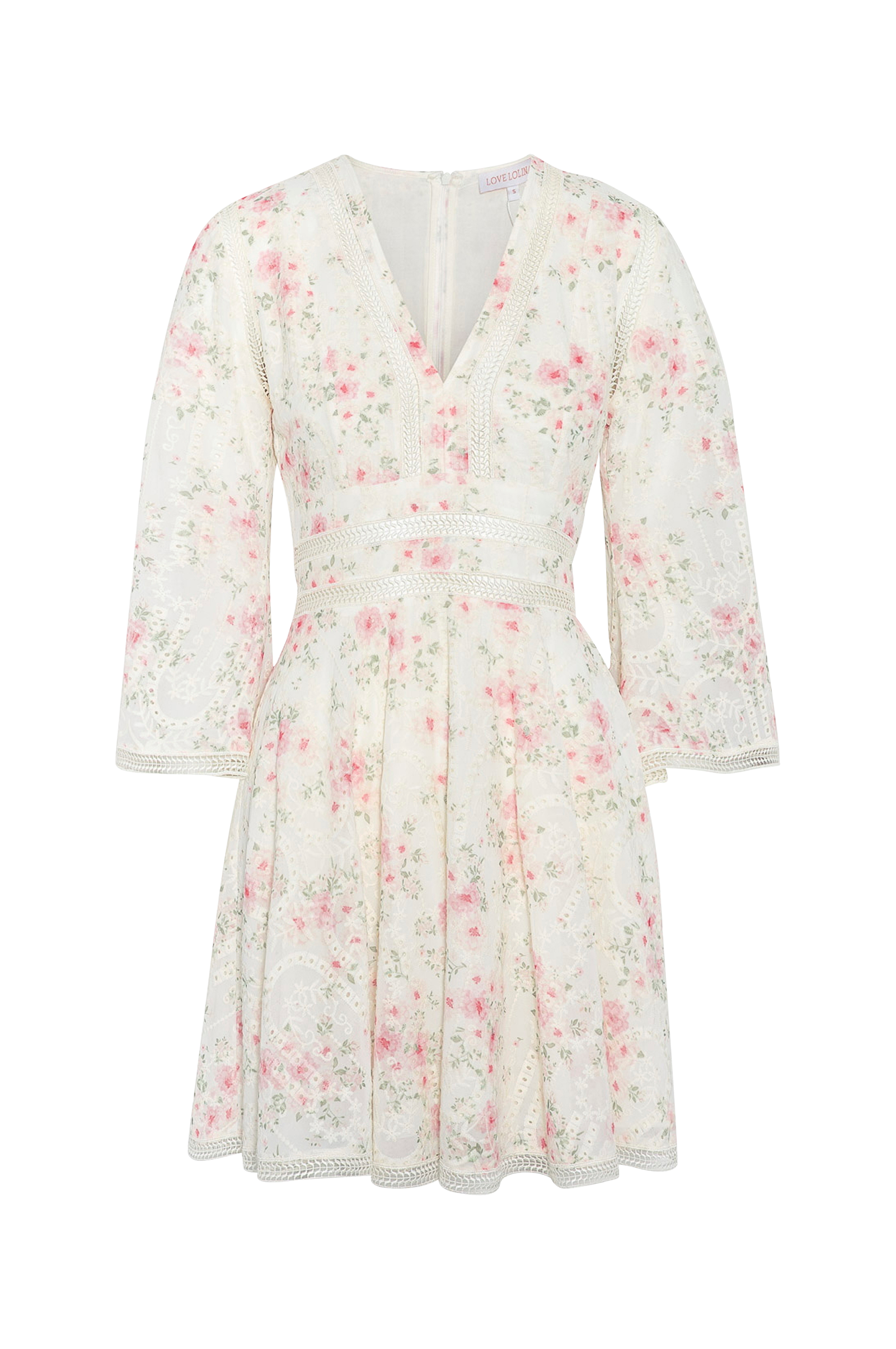 • Mekko koristeellisilla pitsiupotteilla• V-pääntie• 3/4-pituiset trumpettihihat• Vetoketju selässä• Röyhelö alhaalla• Tekstiilivuori• Pituus: 88 cm koossa S