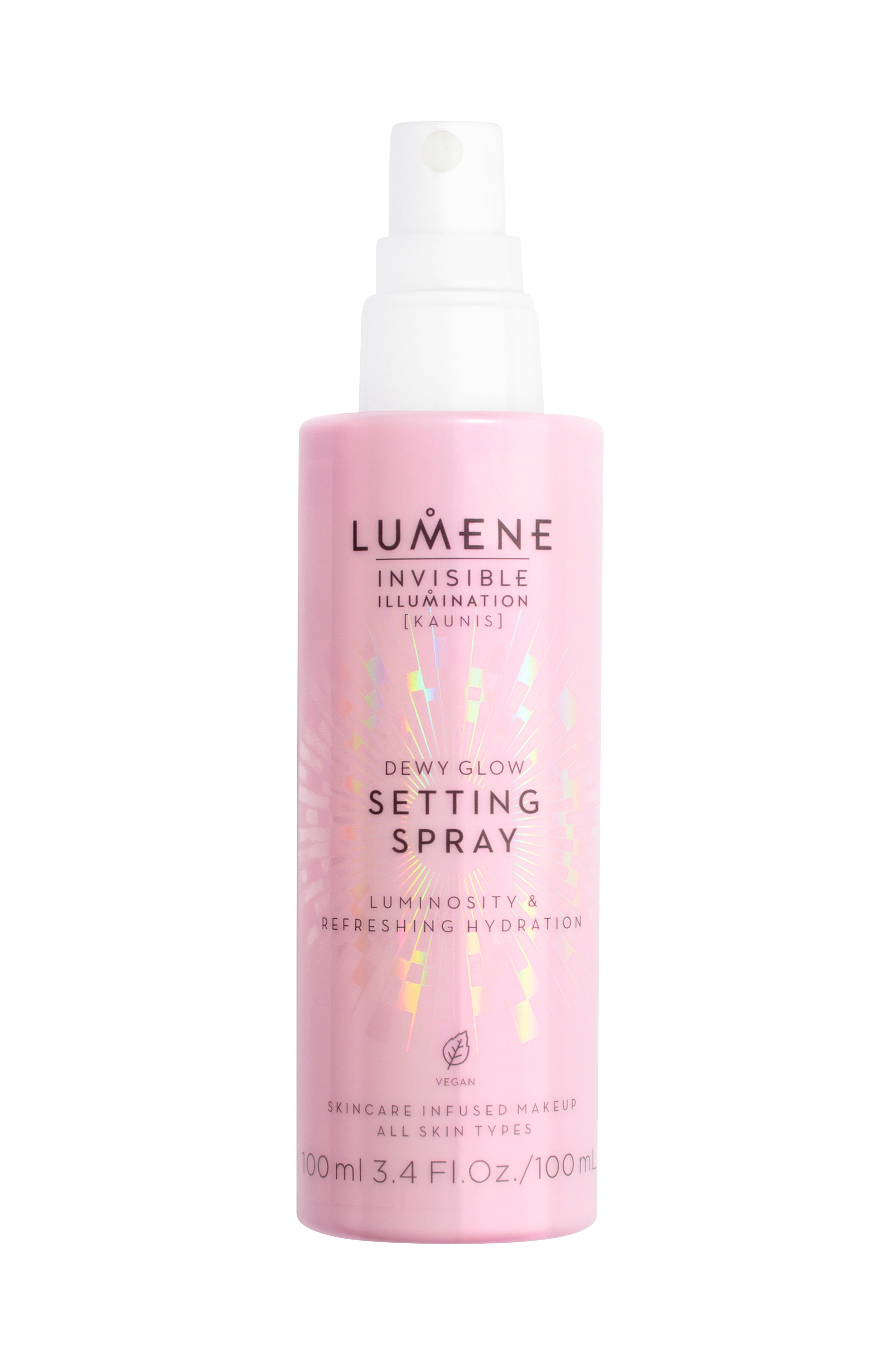 Kevyt ja kosteuttava Invisible Illumination Dewy Glow Setting Spray -meikinkiinnityssuihke kiinnittää meikin ja antaa iholle kasteenraikkaan hehkun. Kirkastavaa pohjoista horsmaa, kosteuttavaa pohjoista levää ja pohjoista lähdevettä sisältävä äärimmäisen hienojakoinen koostumus antaa iholle välittömästi raikasta kosteutusta. Monikäyttöinen koostumus sopii käytettäväksi meikkauksen jälkeen tai koska tahansa päivän aikana, kun kaipaat kosteutusta ja hehkua. Vegaaninen.