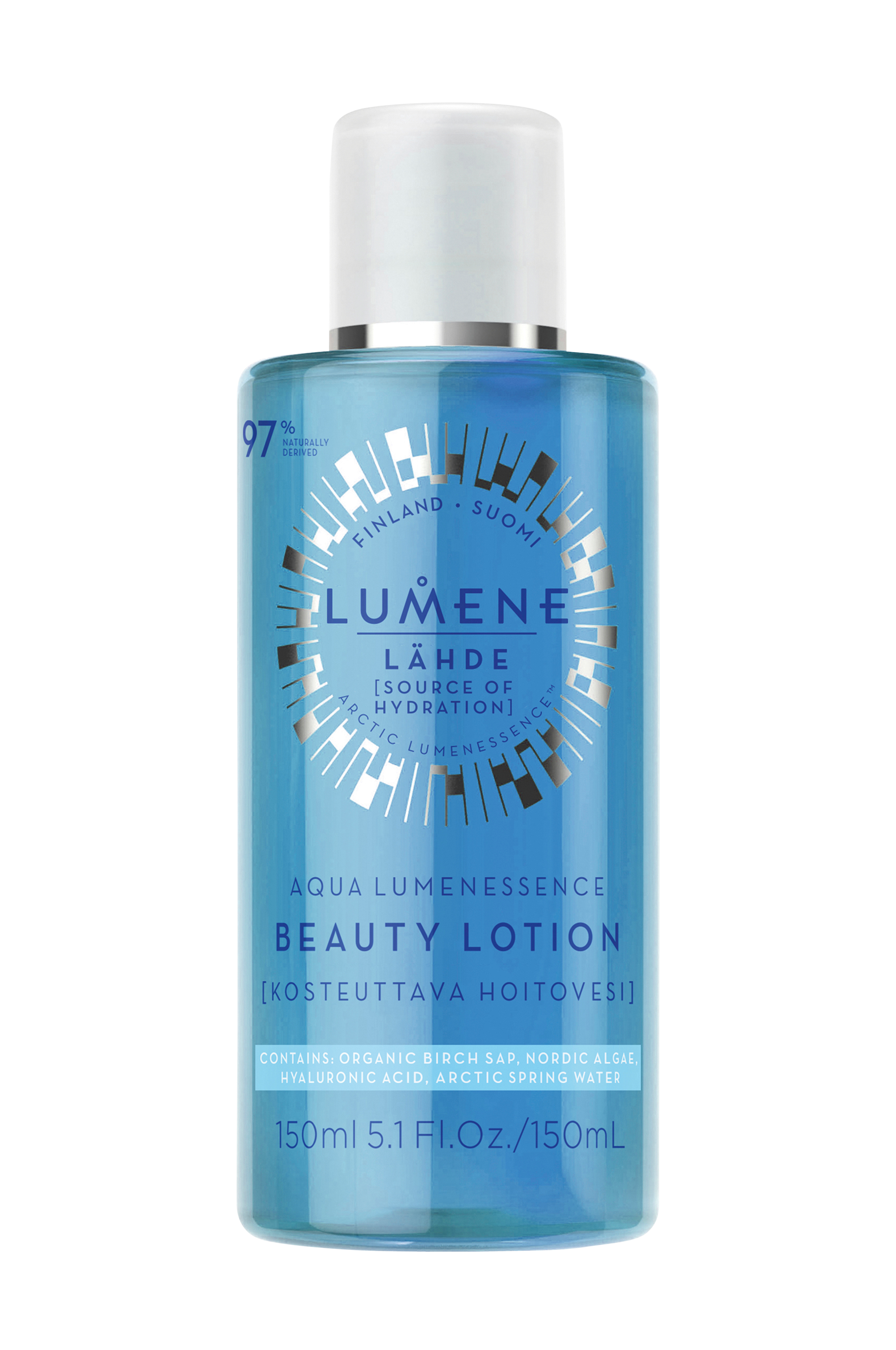 LÄHDE Aqua Lumenessence Beauty Lotion on hoitovesi, joka imeytyy nopeasti ja syväkosteuttaa ihoa. Virkistävää pohjoismaista koivunmahlaa, kosteutta säilyttävää pohjoismaista levää, pohjoismaista lähdevettä ja tehokasta hyaluronihappoa sisältävä hoitovesi kosteuttaa ihoa pitkäkestoisesti ja valmistaa ihoa hyödyntämään muut päivittäisessä ihonhoitorutiinissa käytettävät tuotteet.