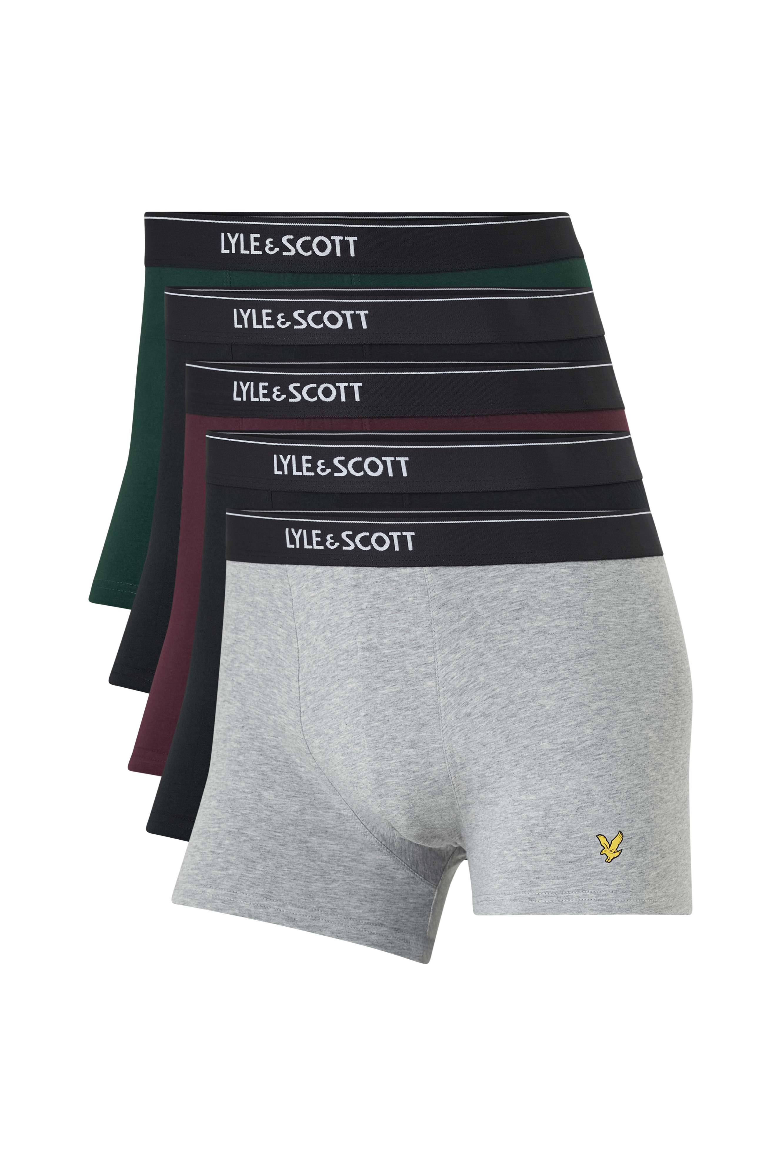 Lyle & Scott -bokserit, 5/pakkaus. Pehmeää puuvillaa. Kuminauhareuna vyötäröllä ja normaali istuvuus.