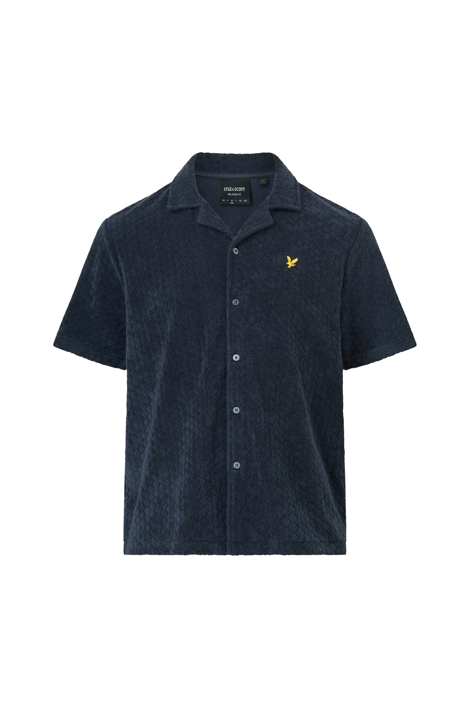 • Lyhythihainen paita kuviokudotusta froteesta• Laakakaulus• Nappikiinnitys