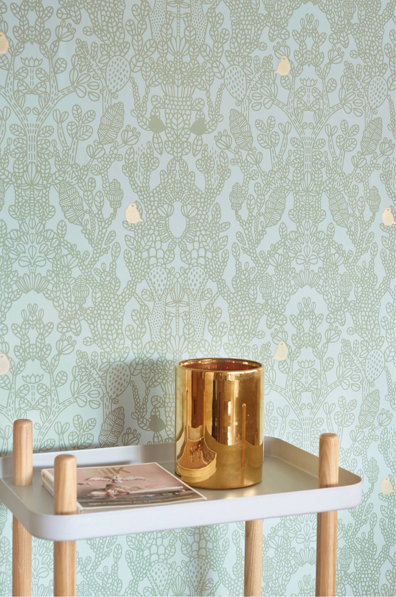 Kaunis kuitutapetti (non-woven). Valmistaja ruotsalainen Majvillan. Helppo levittää suoraan seinälle. Suunnittelija Charlotta Sandberg. Ympäristöystävällisesti tuotettu. Kuvion mallikerta 53x53cm. Suora kuvion kohdistus. Rullassa 0,53 x 10,05 m.