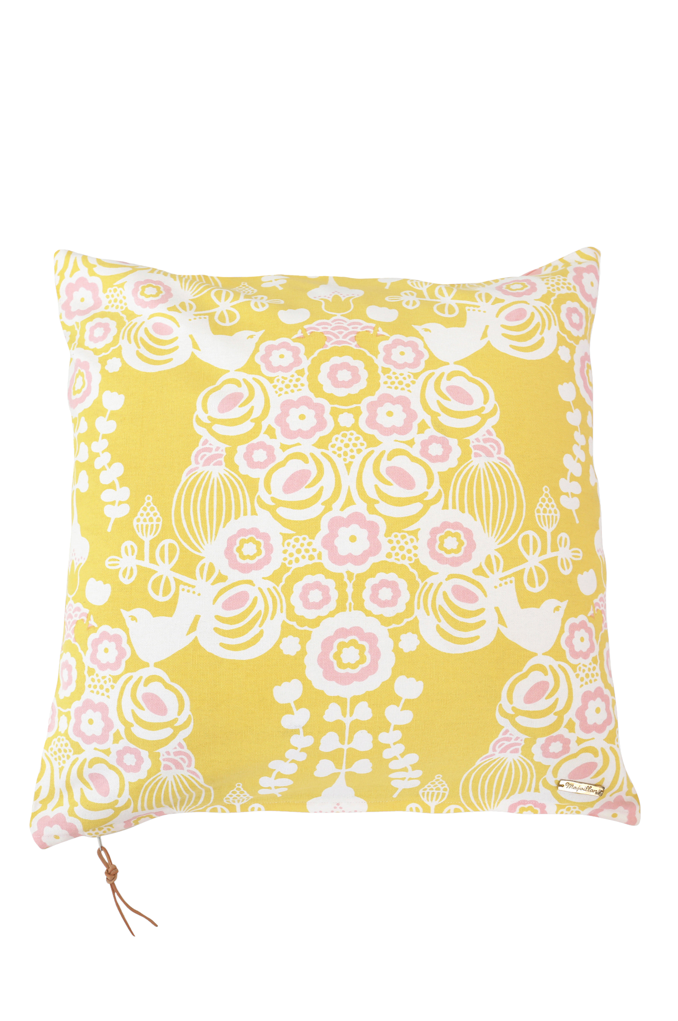 Majvillan-tyynynpäällinen, jossa kivat detaljit. 100% ekologista puuvillaa. Piilovetoketju pohjassa. 50x50 cm.