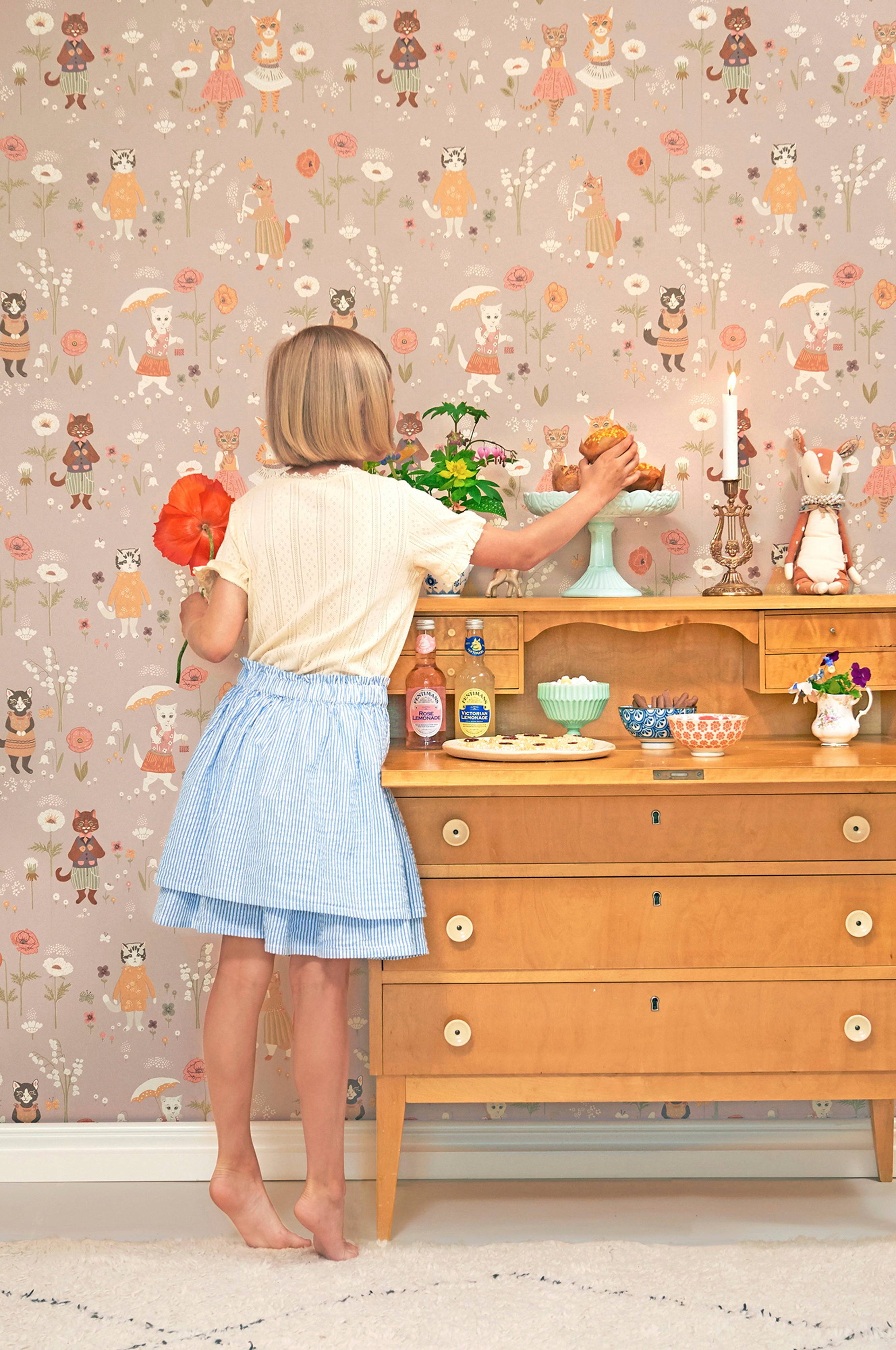 Kaunis non-woven tapetti. Valmistaja ruotsalainen Majvillan. Helppo tapetoida - liimataan suoraan seinälle. Tapetin on suunnitellut Charlotta Sandberg. Tuotettu Ruotsissa. Ympäristöystävällinen. Kuvion mallikerta 64x53 cm. Suora kuvionkohdistus. Rulla 0,53x10,05 m.