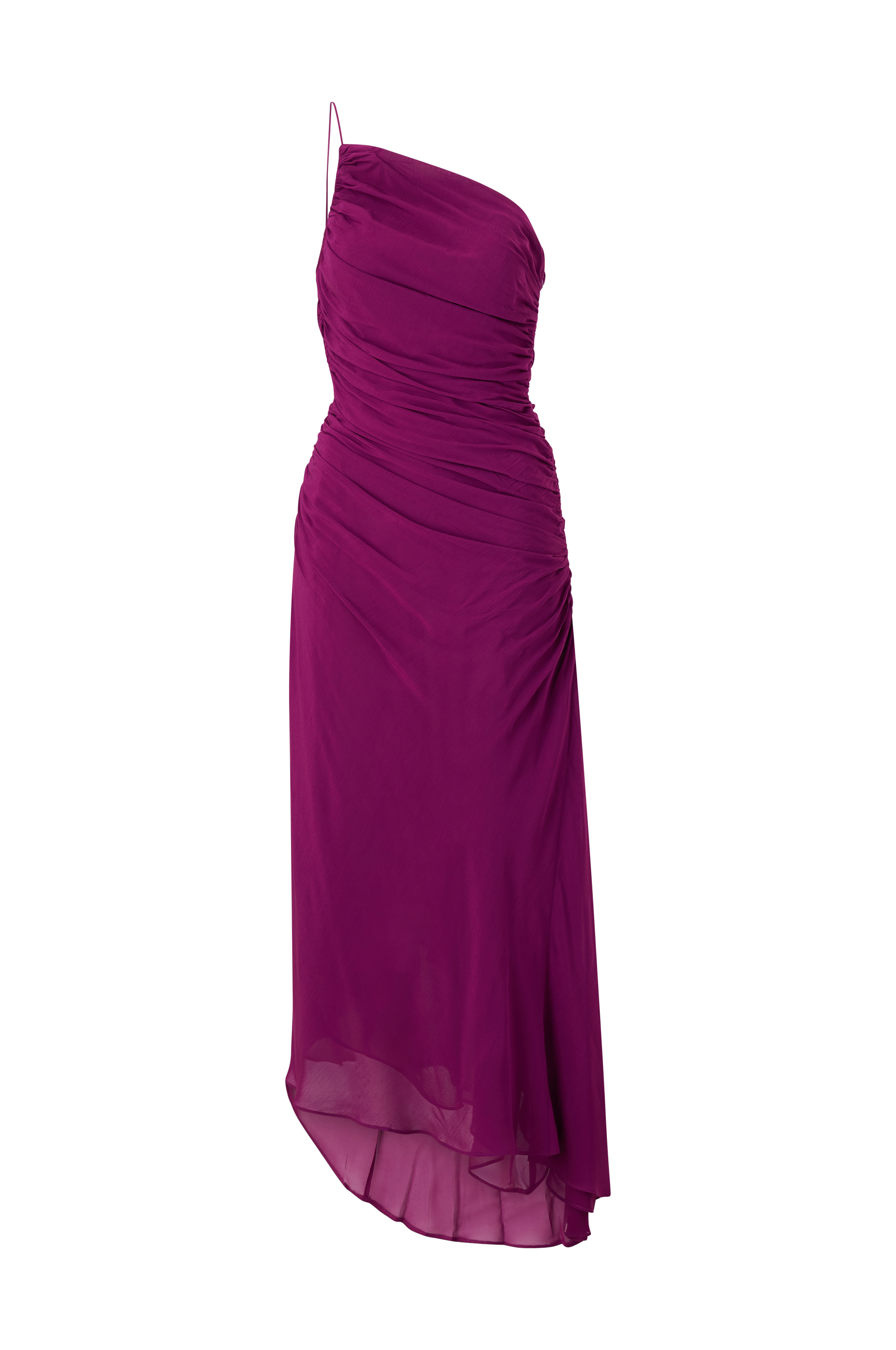 • Pitkä, vuorattu sifonkimekko• Epäsymmetrinen malli ylhäällä ja alhaalla• Yksi ohut olkain• Vetoketju sivulla• Rypytys sivuilla• Pituus: 132 cm koossa S