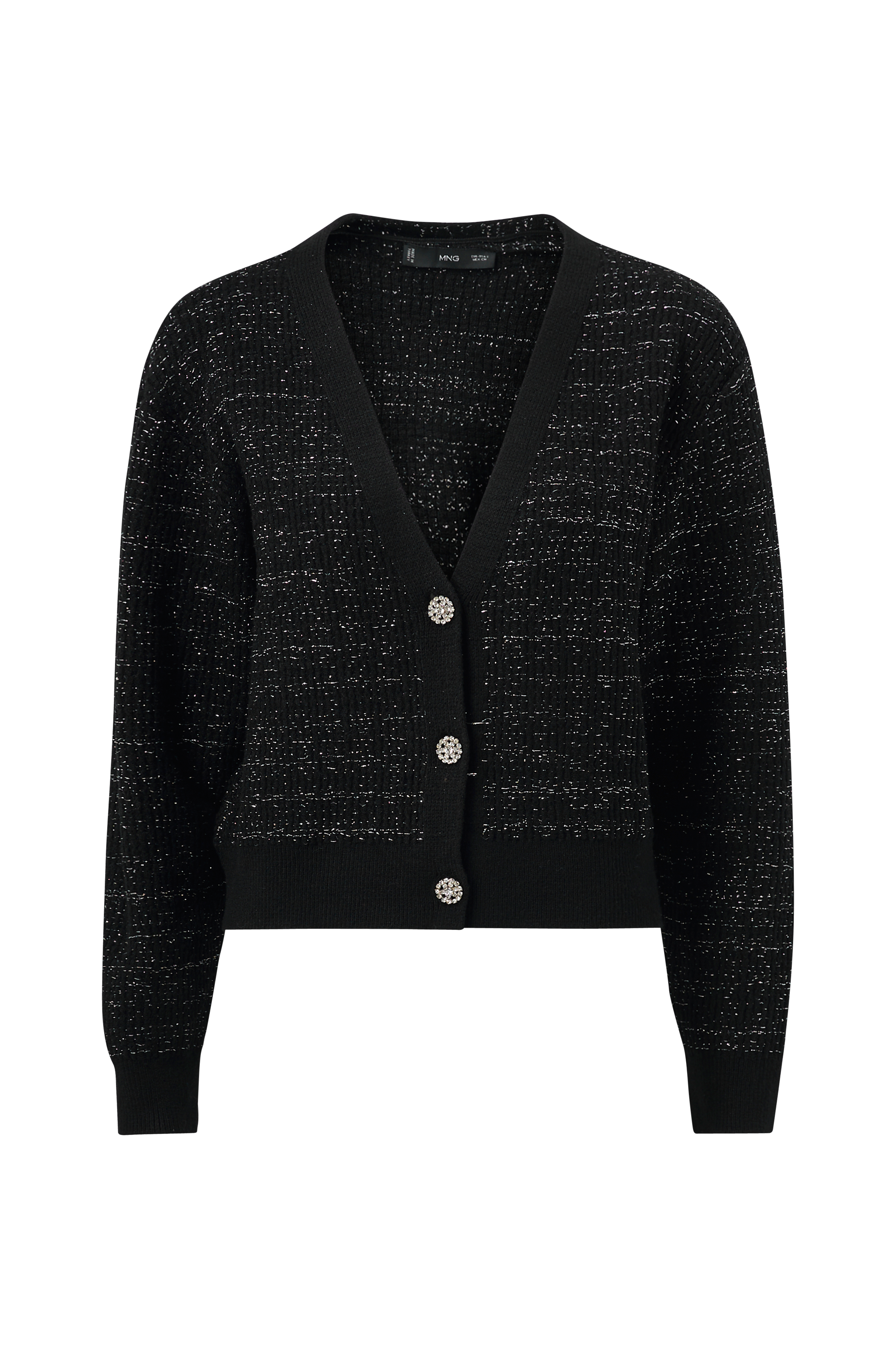 • Neulottu neuletakki hopeanvärisellä kimallelangalla