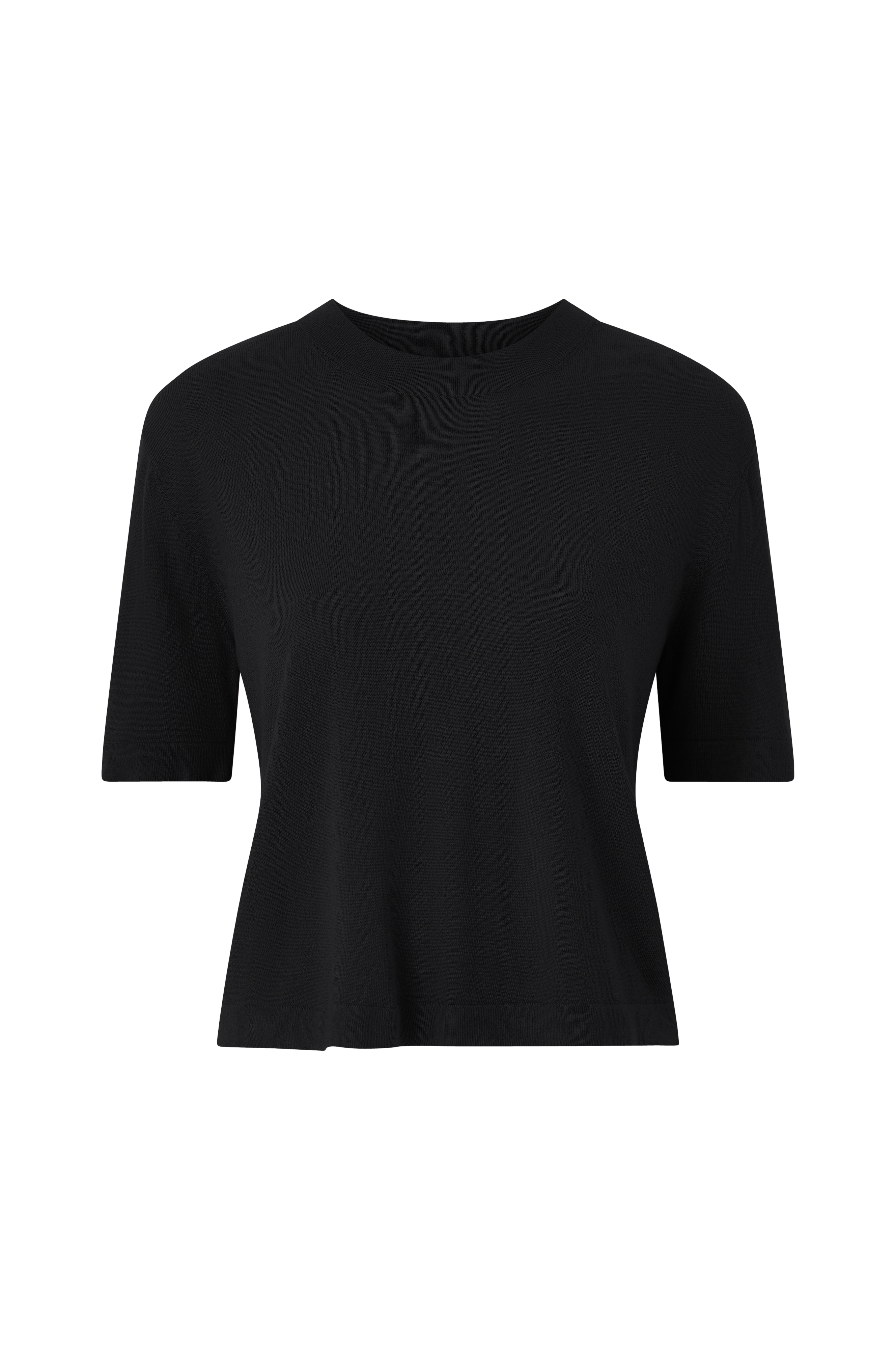 • Tiheäsilmukkainen, lyhythihainen pulloveri• Pyöreä kaula-aukko