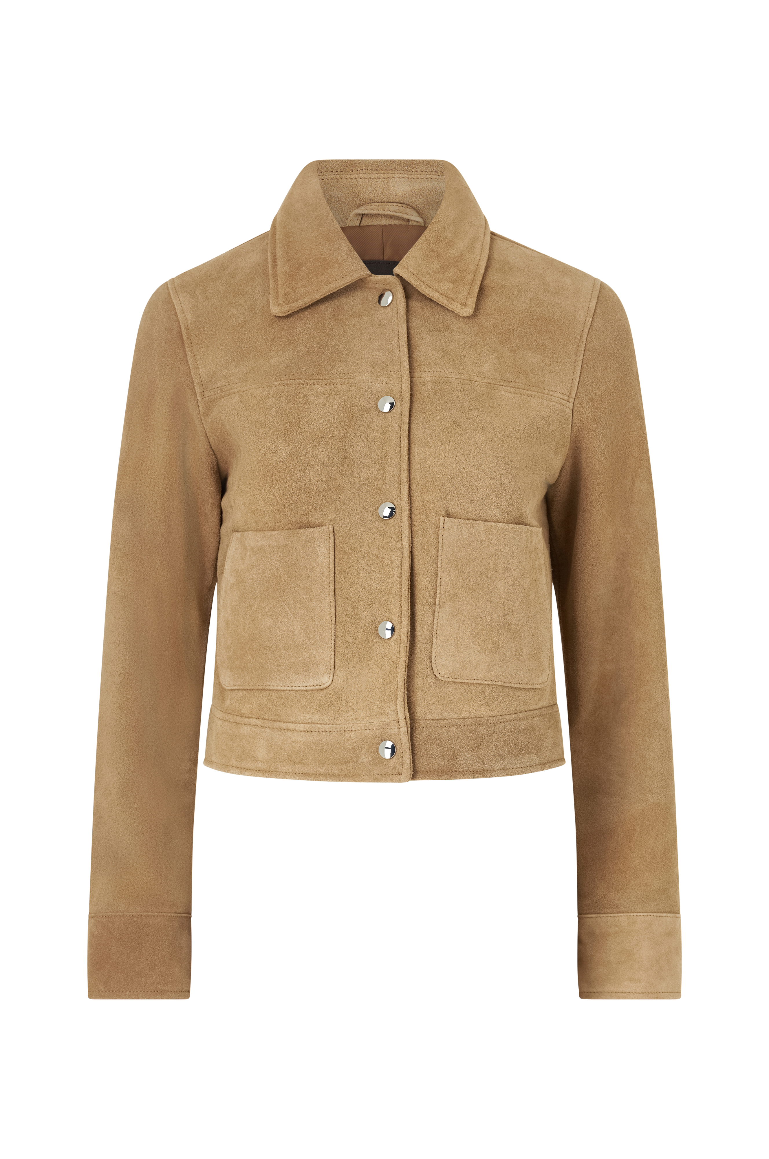 • Takki mokkanahkasta hieman lyhemmällä muotoilulla• Pitkät hihat hihansuulla hihansuissa• Napituslista edessä neppareilla metallista• Pyöreä kaula-aukko kauluksella• Kaksi taskua edessä• Pituus: 48 cm koossa S