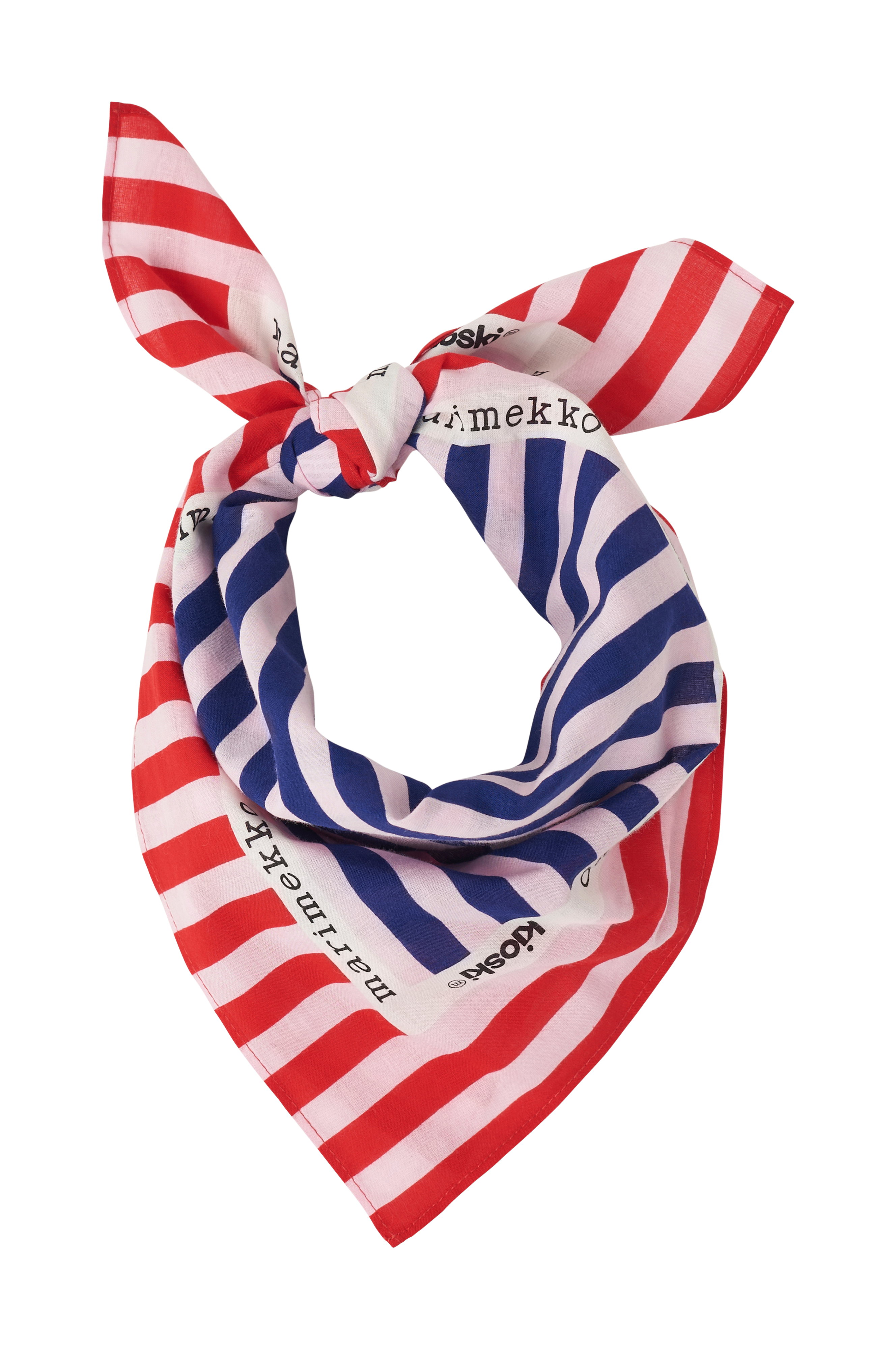 Astrilli huivi on valmistettu luomupuuvillasta, ja siinä on kaksi eriväristä Tasaraita -kuviota. Sisäreunoissa kulkee Marimekko-painoteksti.