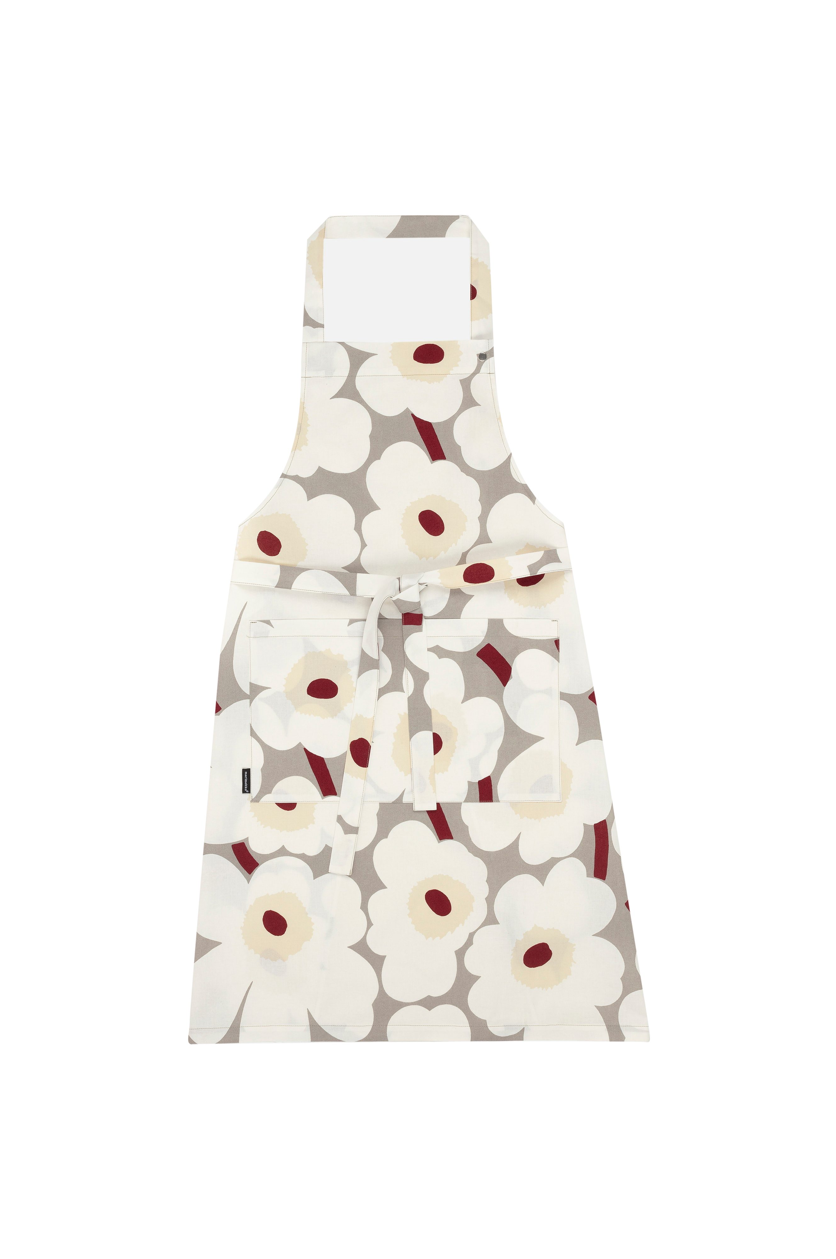 Pieni Unikko -kuvioinen esiliina on valmistettu puuvillasta, joka on painettu Helsingissä. Esiliinassa on etutasku ja säädettävä kaulanauha. Unikko (unikko), joka symboloi luovuutta, syntyi aikana, jolloin Marimekon mallistoissa ei juuri ollut kukkakuvioita. Maija Isola kuitenkin innostui kukkateemasta ja päätti luoda kokonaisen valikoiman uudenlaisia kukkakuvioita.