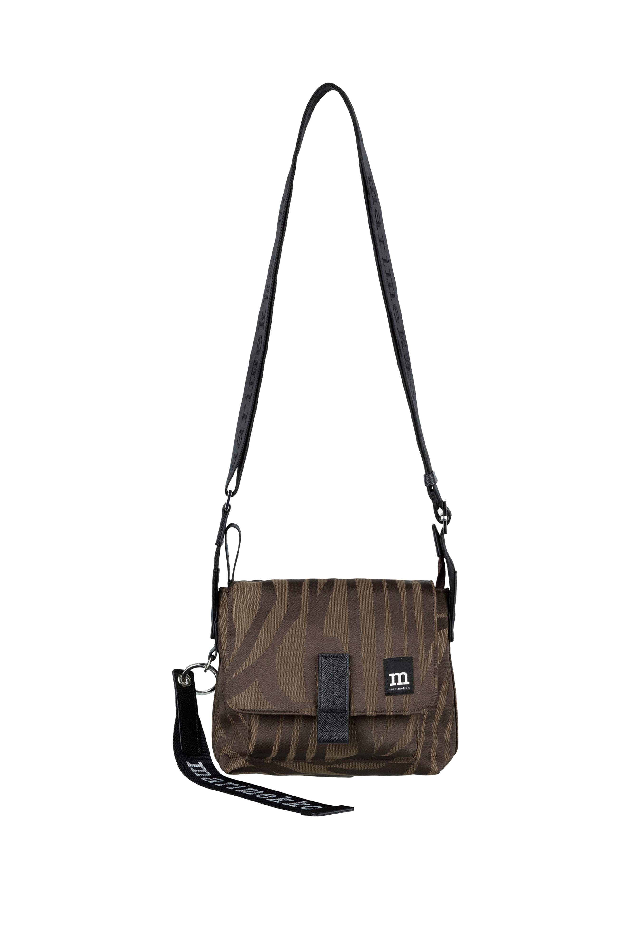 Mini Messenger -olkalaukussa on yksi avotasku ja etuläpän alla suurempi avolokero. Säädettävässä olkahihnassa on jacquardneulottu Marimekko- logoteksti. Laukussa on Marimekko-avaimenperä.
