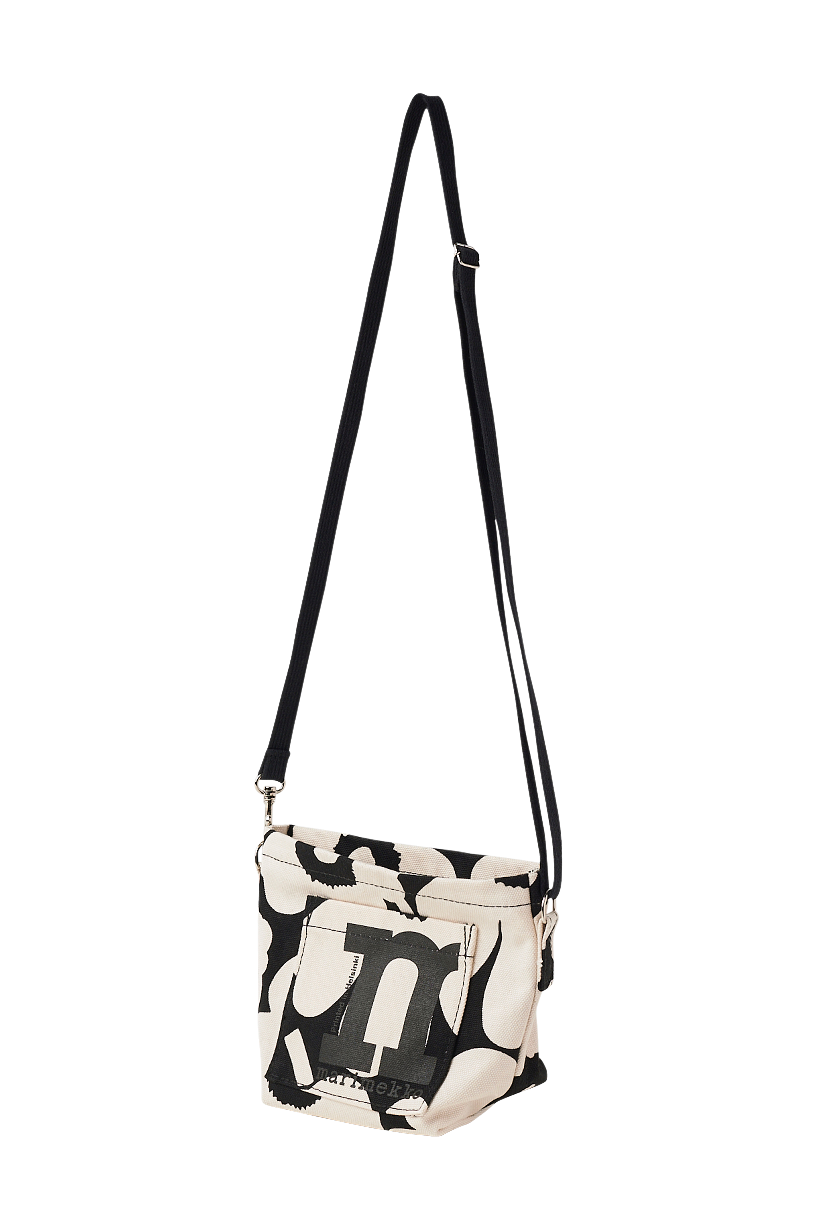 Mono Mini Crossbody -laukku valkaisematonta ekologista puuvillaa, jossa Unikko-kuvio. Painettu Helsingissä. Olkalaukussa on vetoketjusuljenta, avoin ulkotasku ja säädettävä olkahihna.