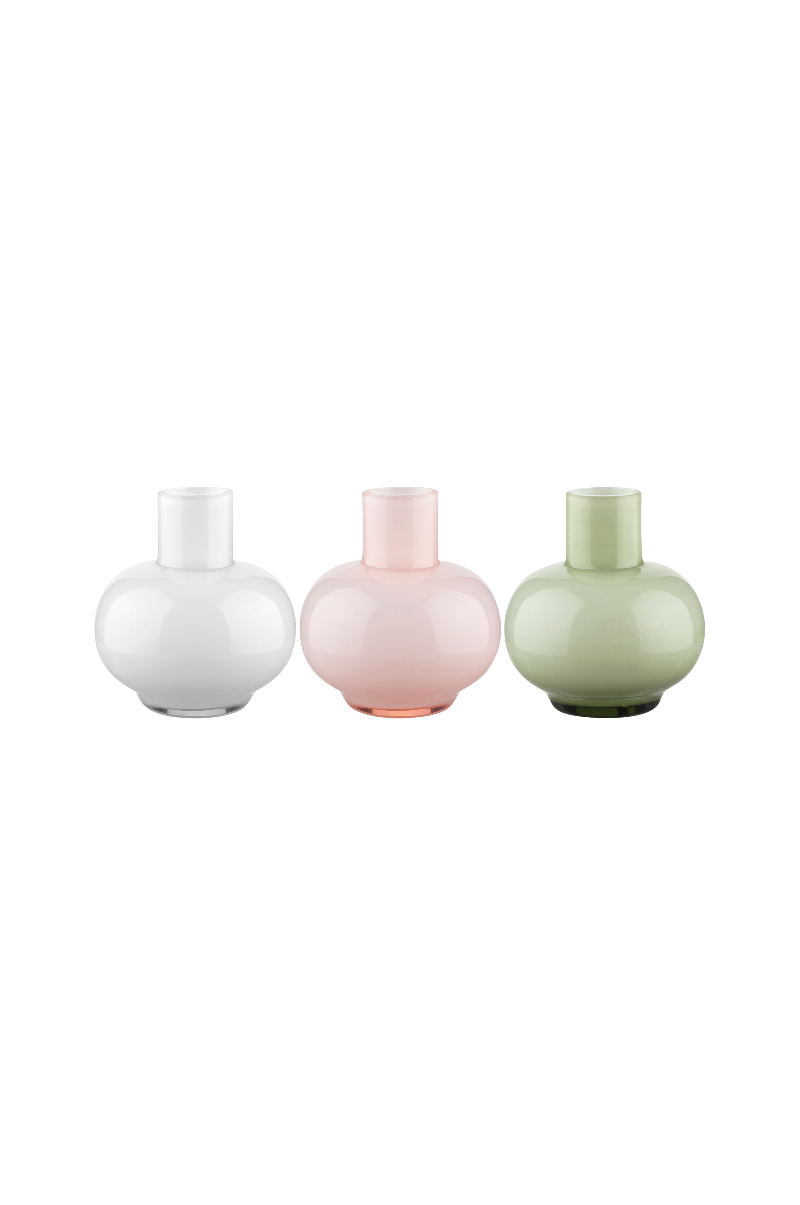 Carina Seth-Anderssonin suunnittelemat pienet Mini-maljakot on valmistettu suupuhalletusta lasista. Suosittelemme käsinpesua. Settiin kuuluu kolme eriväristä maljakkoa.