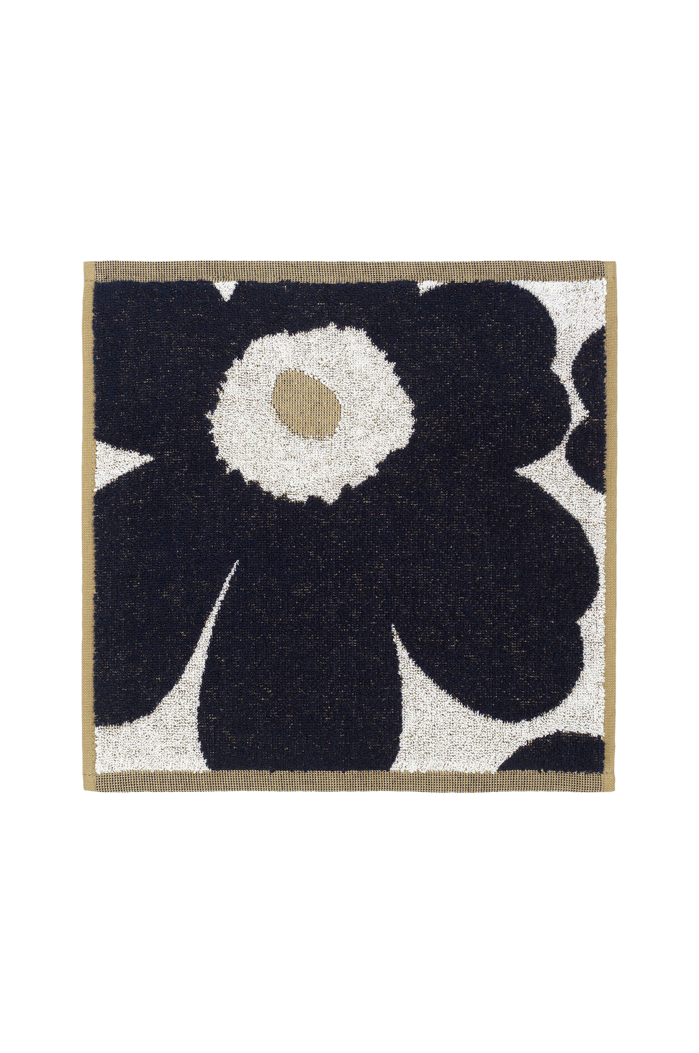 Minipyyhe ekologista puuvillafroteeta, jossa Unikko-kuosi. Kuvion väri on pyyhkeen nurjalla puolella päinvastainen kuin oikealla puolella. Unikko symboloi luovuutta ja syntyi aikana, jolloin Marimekon mallistoissa ei juurikaan ollut kukkakuoseja. Maija Isolaa kukka-aihe kuitenkin kiinnosti, ja hän päätti suunnitella kokonaisen sarjan uudenlaisia kukkakuoseja.