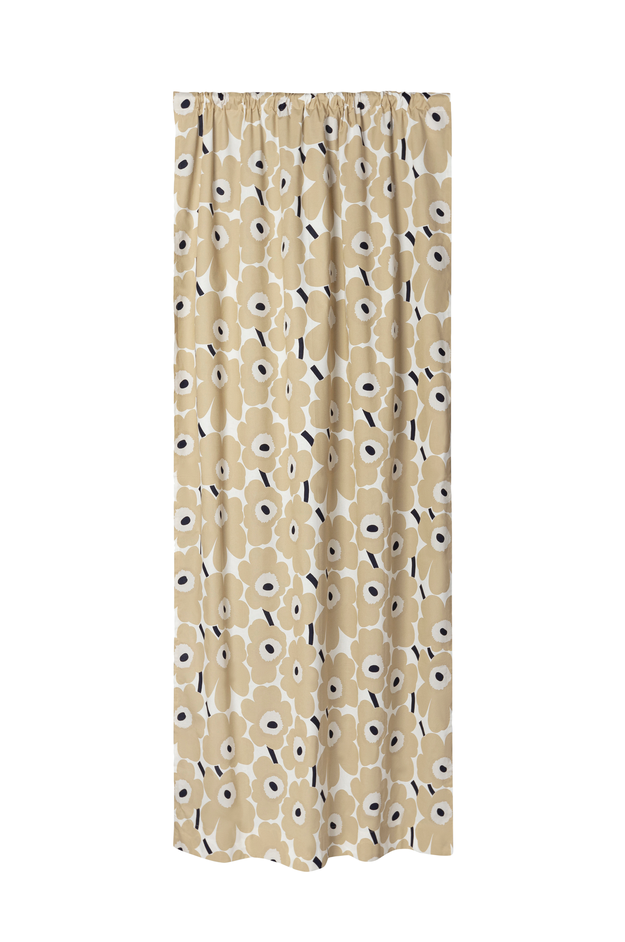 Pieni Unikko -kuosinen valmisverho on valmistettu puuvillasta ja painettu Helsingissä. Verhon yläreunassa on verhonauha helppoa ripustamista varten. Verhon takana on verhonauha, joten se voidaan ripustaa tankoon tai kiinnittää verhokiskoon perinteisillä sormikoukuilla. Verhonauha voidaan myös rypyttää.